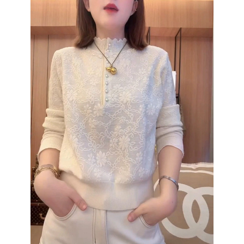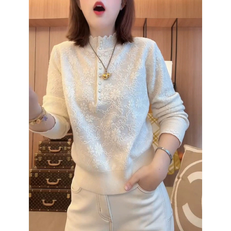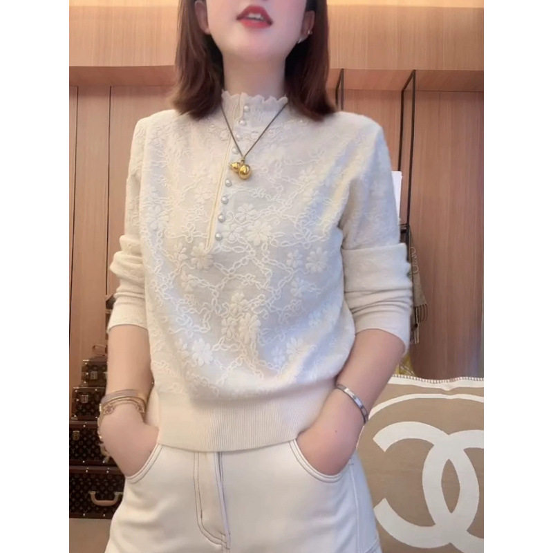 法式重工刺绣半高领针织衫女秋冬新款时尚洋气可外穿显瘦上衣3975