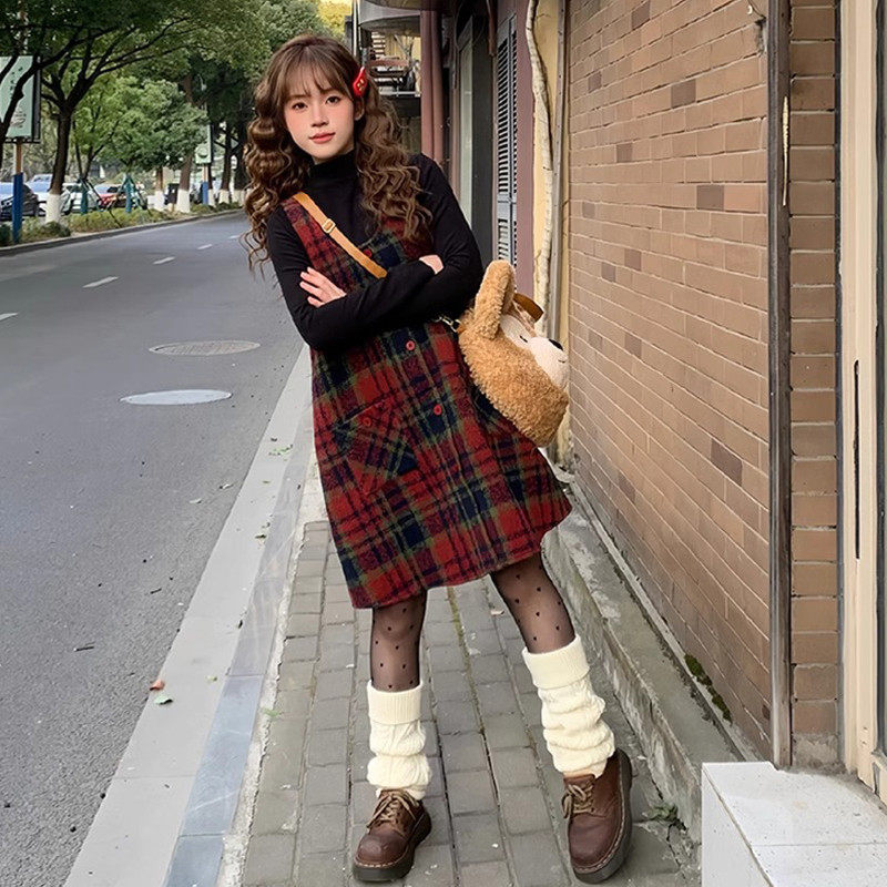 过年新年红色格子吊带裙子女秋冬季2025新款小个子气质抱婴袋裙
