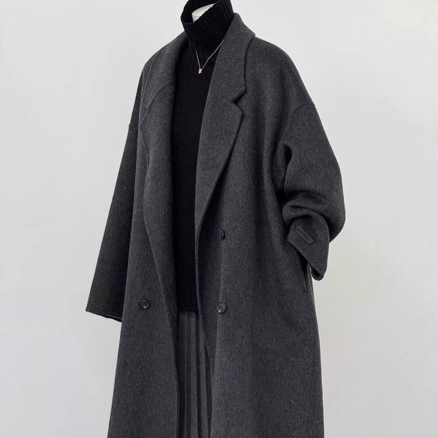 双面羊绒大衣女2025秋冬新款韩系中长版宽松小个子高端羊毛呢外套