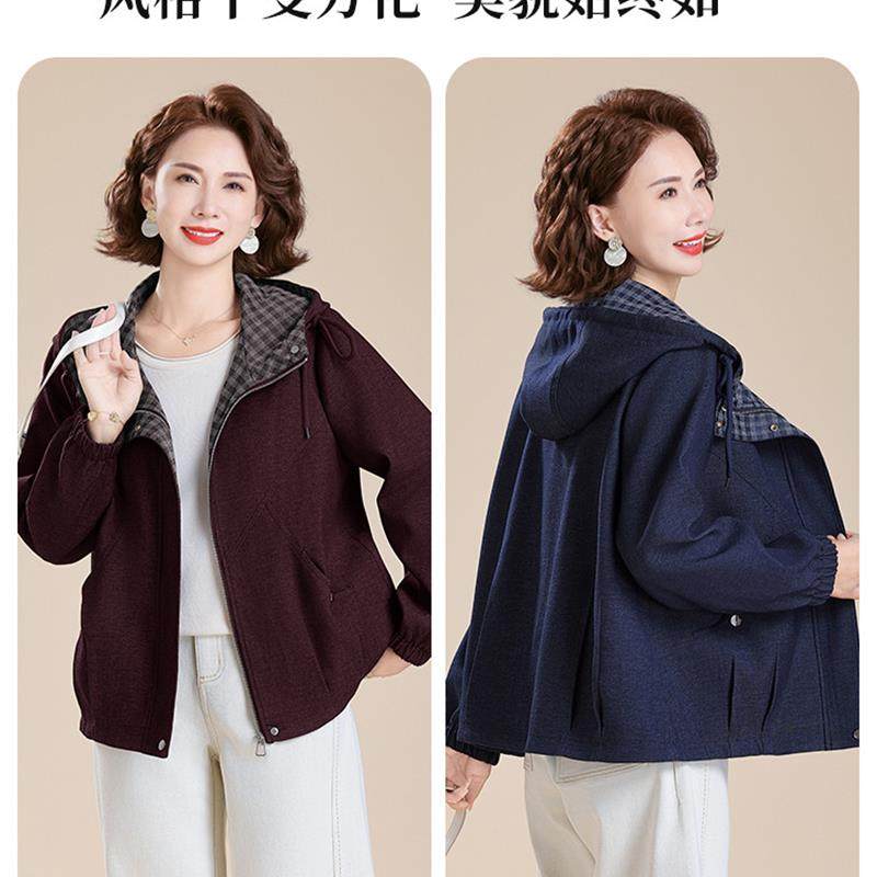 洋气妈妈秋装外套休闲大码2025新款50多岁中老年女士春秋短款风衣