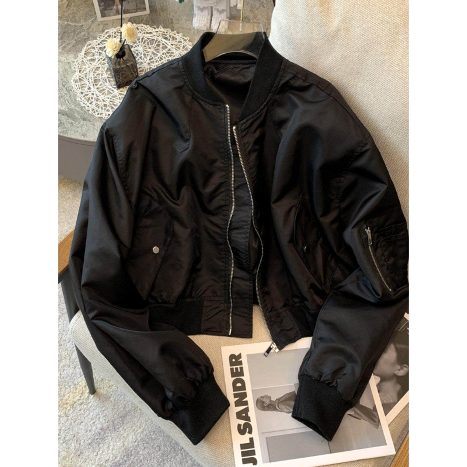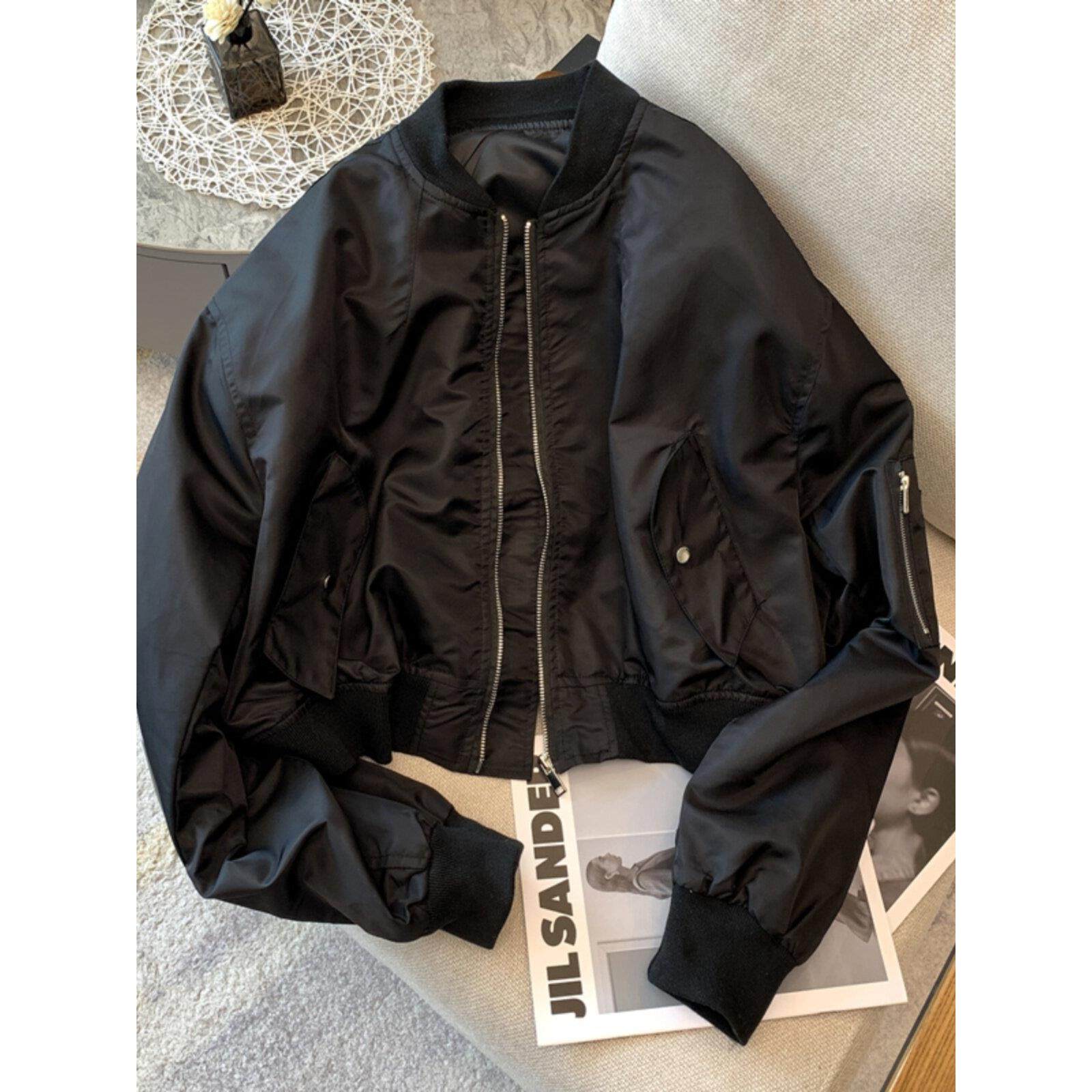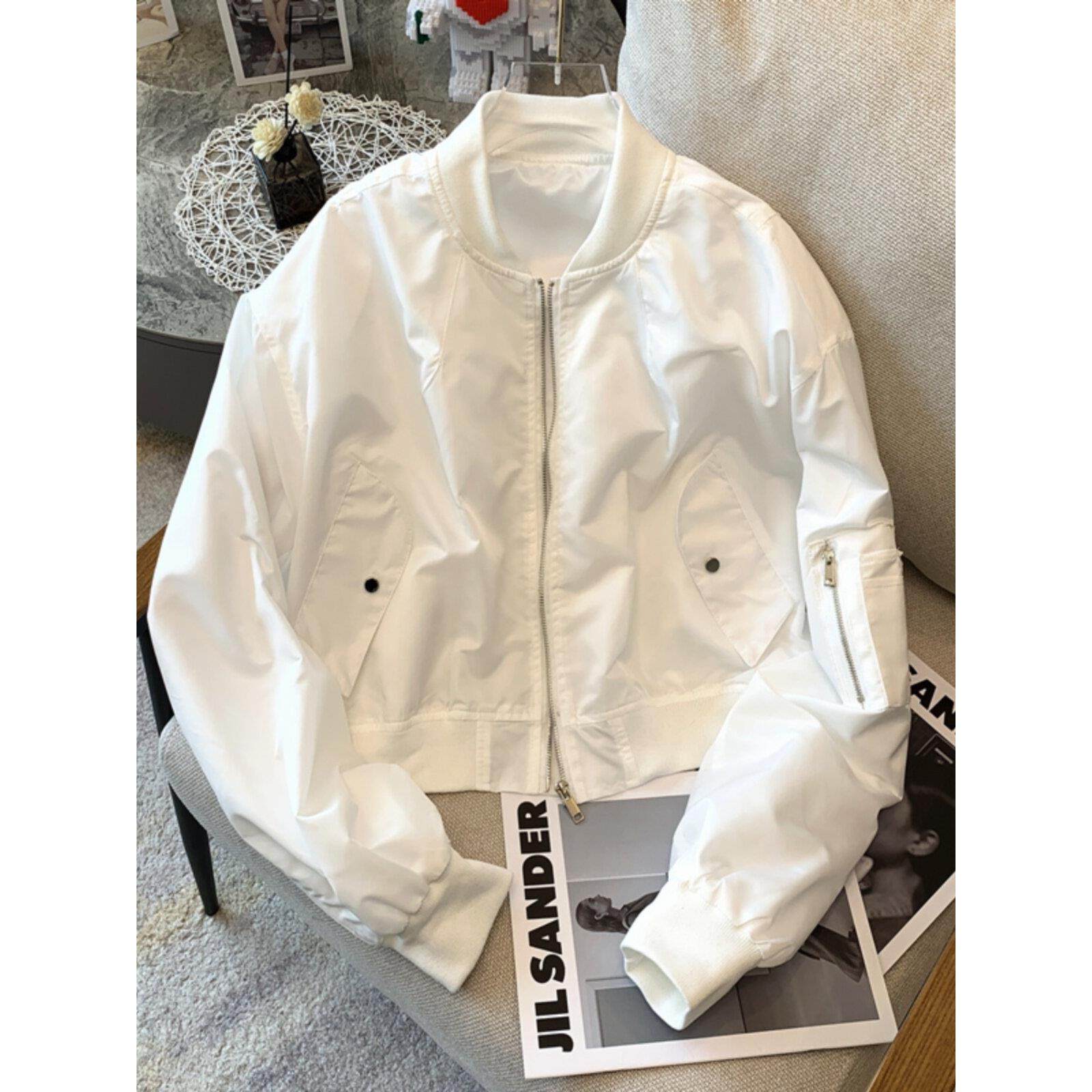韩国时尚短款夹克外套女春秋新款休闲拉链开衫薄款白色棒球服上衣