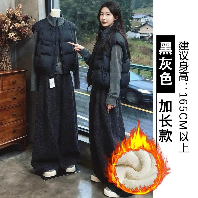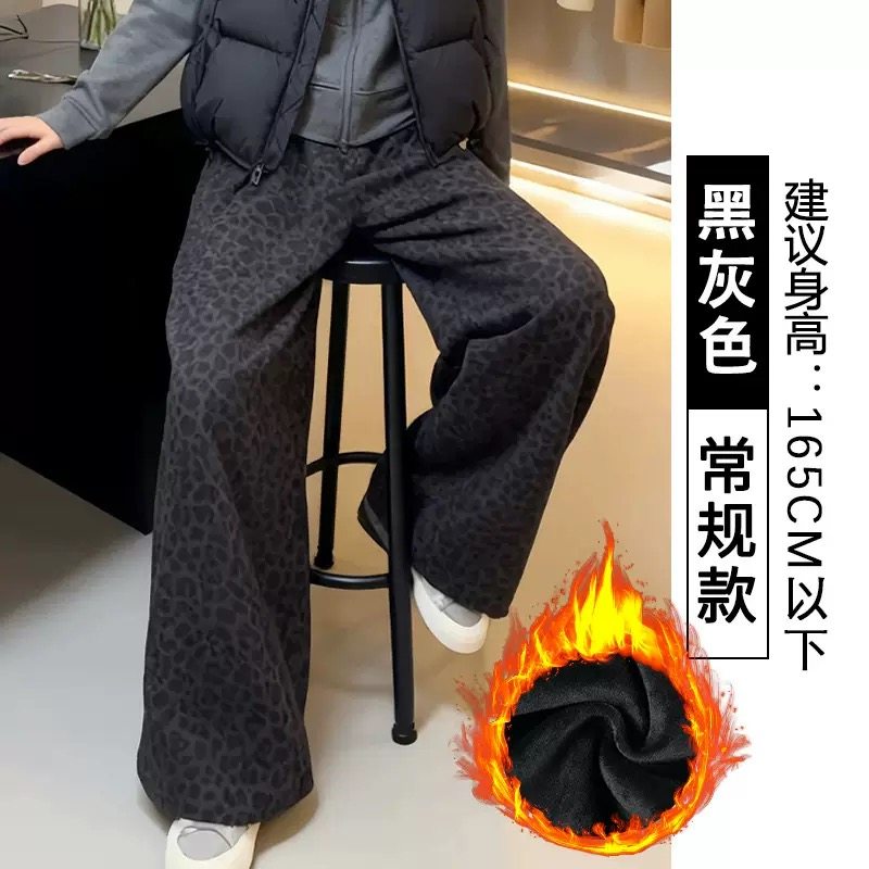 黑灰色特厚羊羔绒豹纹阔腿裤女秋冬季新款棉裤垂感针织加绒糯米裤