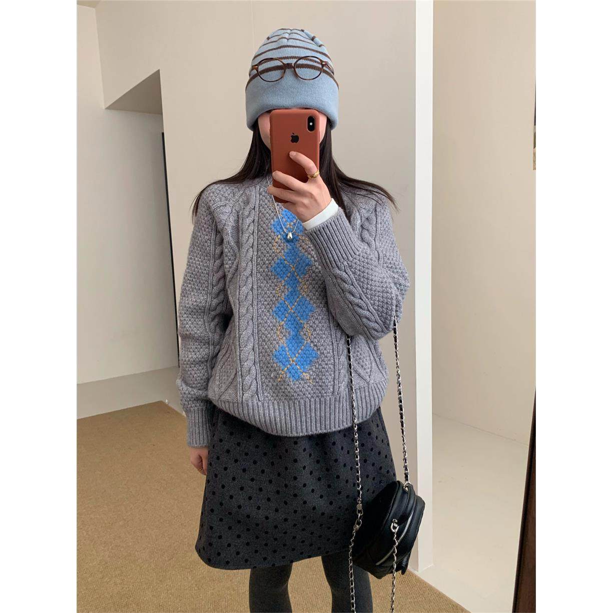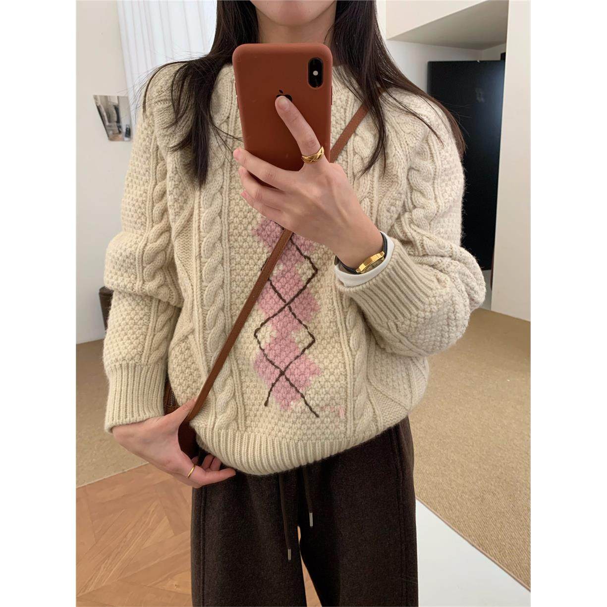 韩系慵懒风加厚圆领麻花毛衣女2025冬季新款设计感休闲百搭上衣
