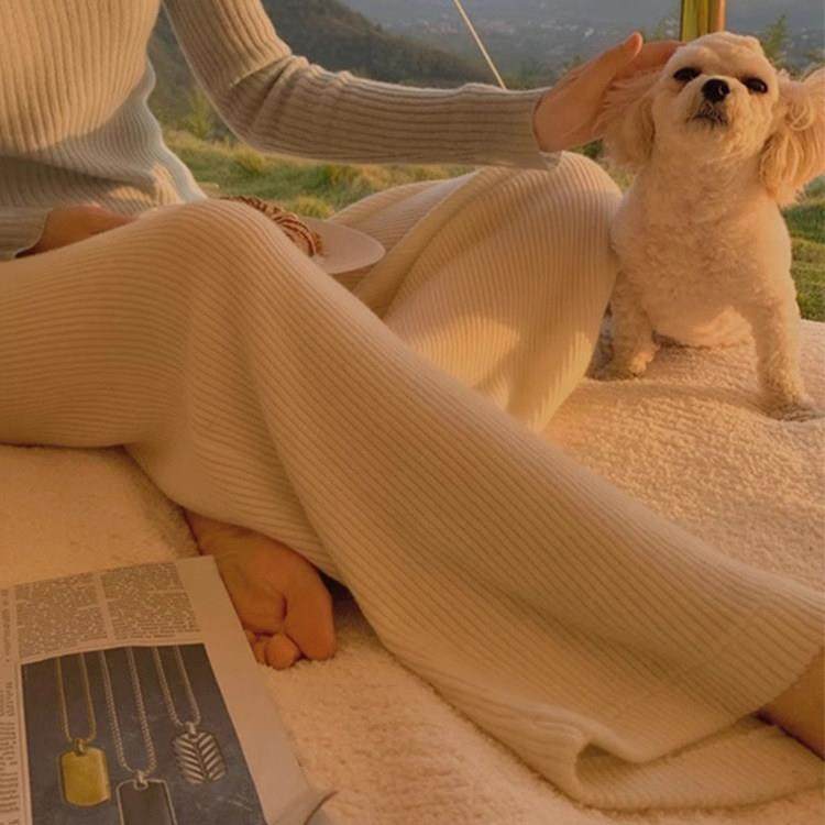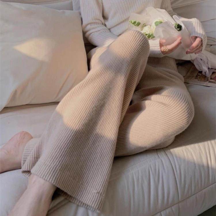 首页> 女装> 日系春秋新款温柔软糯羊毛针织阔腿裤女高腰直筒宽松垂感拖地长裤