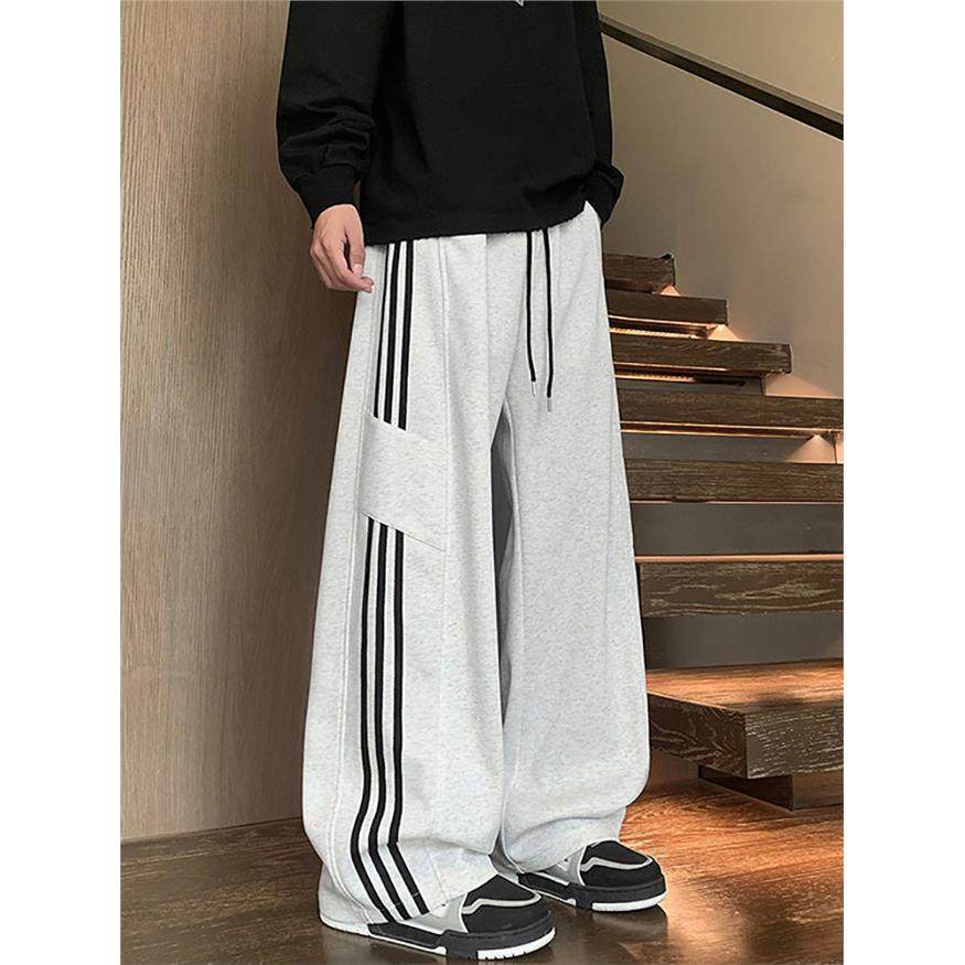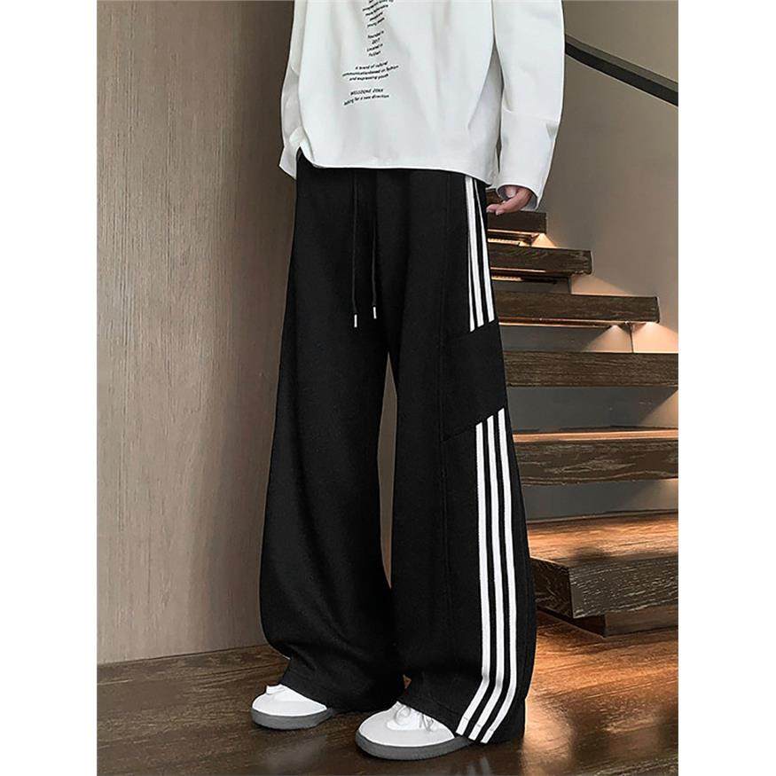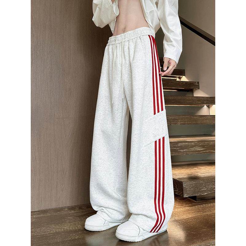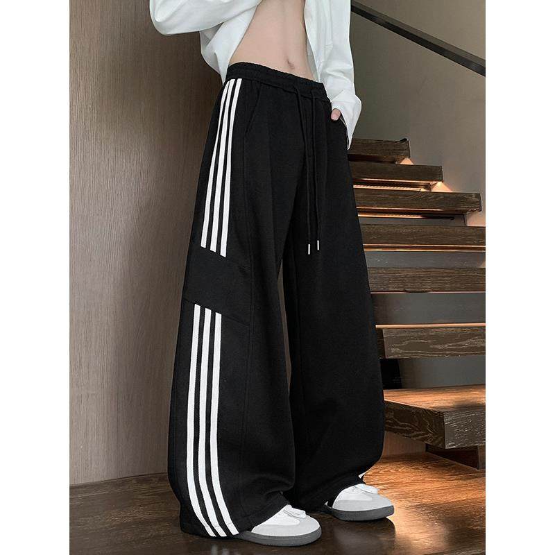 美式三条杠运动卫裤女2025新款秋冬加绒阔腿裤子宽松直筒休闲长裤