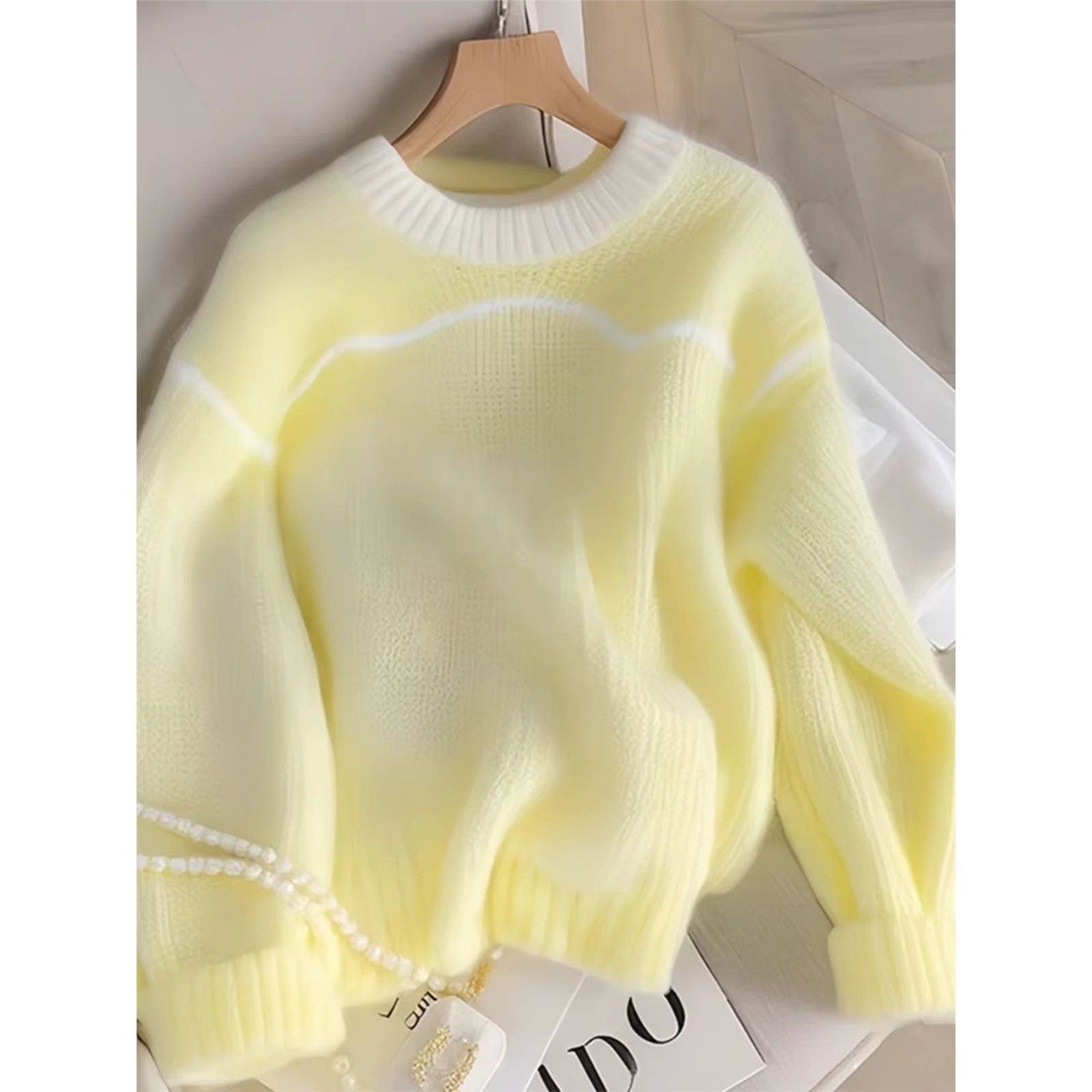正品哥家新款2025冬新款柠檬黄色宽松长袖针织衫毛衣时尚上衣女