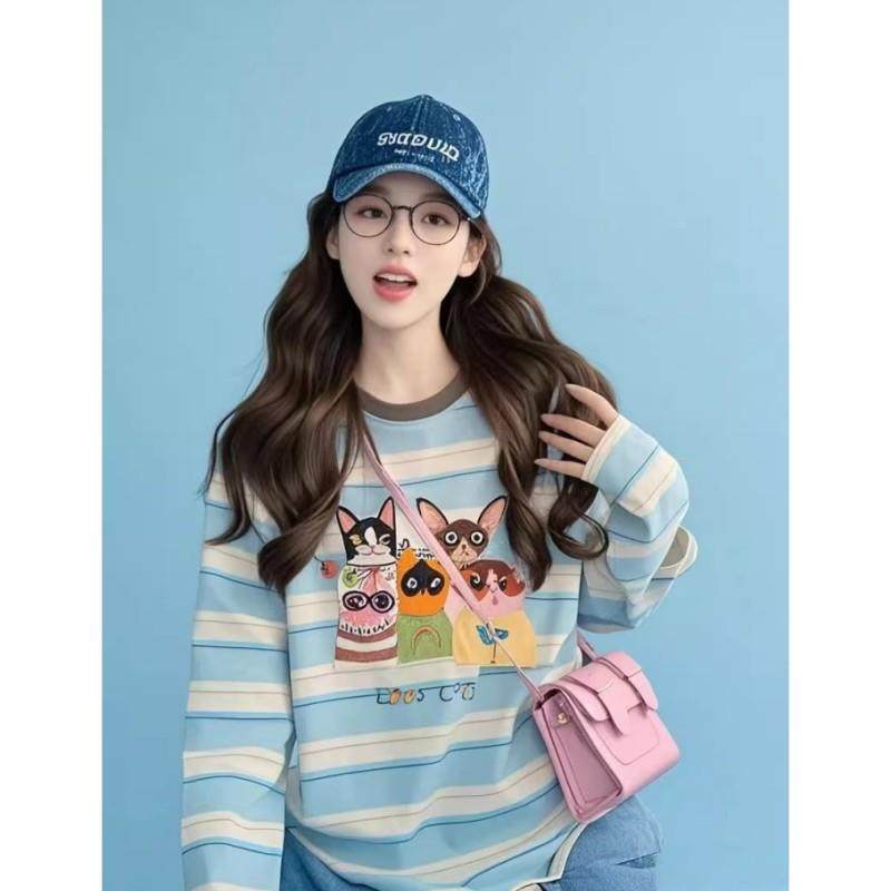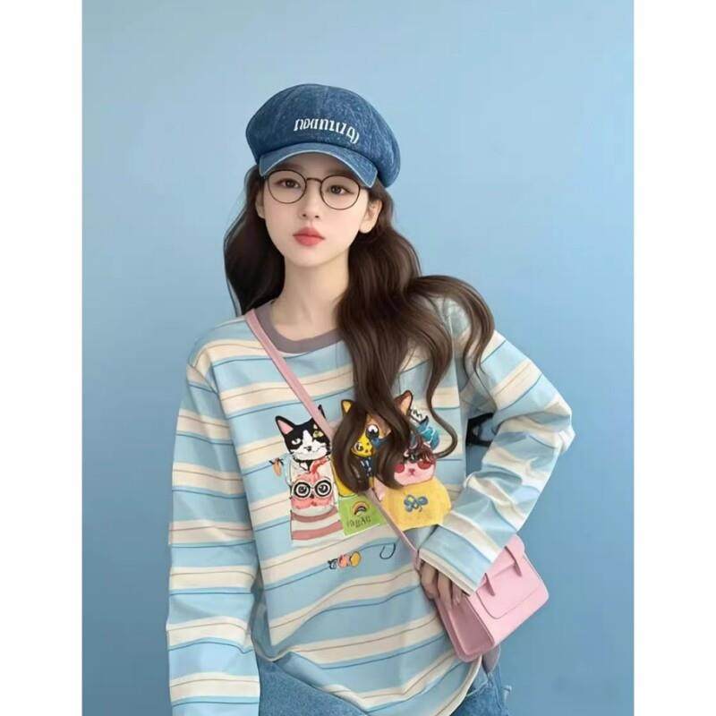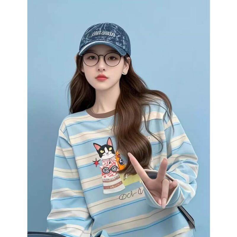 首页> 女装> Next Road英国联名条纹长袖t恤女2025春秋新款季美式卡通宽松上衣