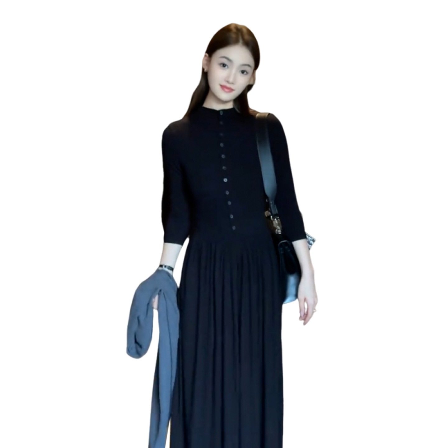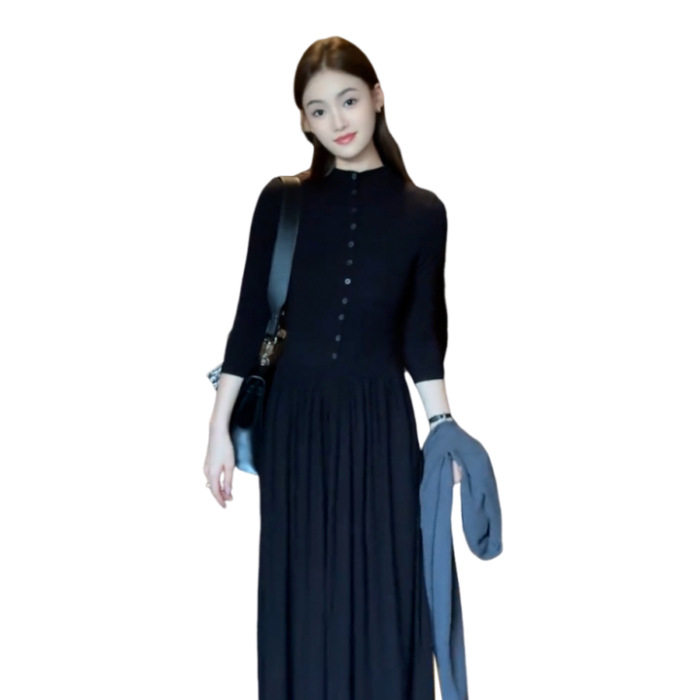 法式高级感黑色连衣裙女秋季收腰显瘦赫本风小黑裙气质好看长裙子