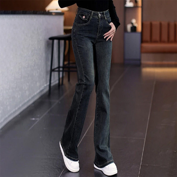 啄木鸟喇叭牛仔裤女加绒加厚马蹄裤子2025新款修身显瘦微喇长裤