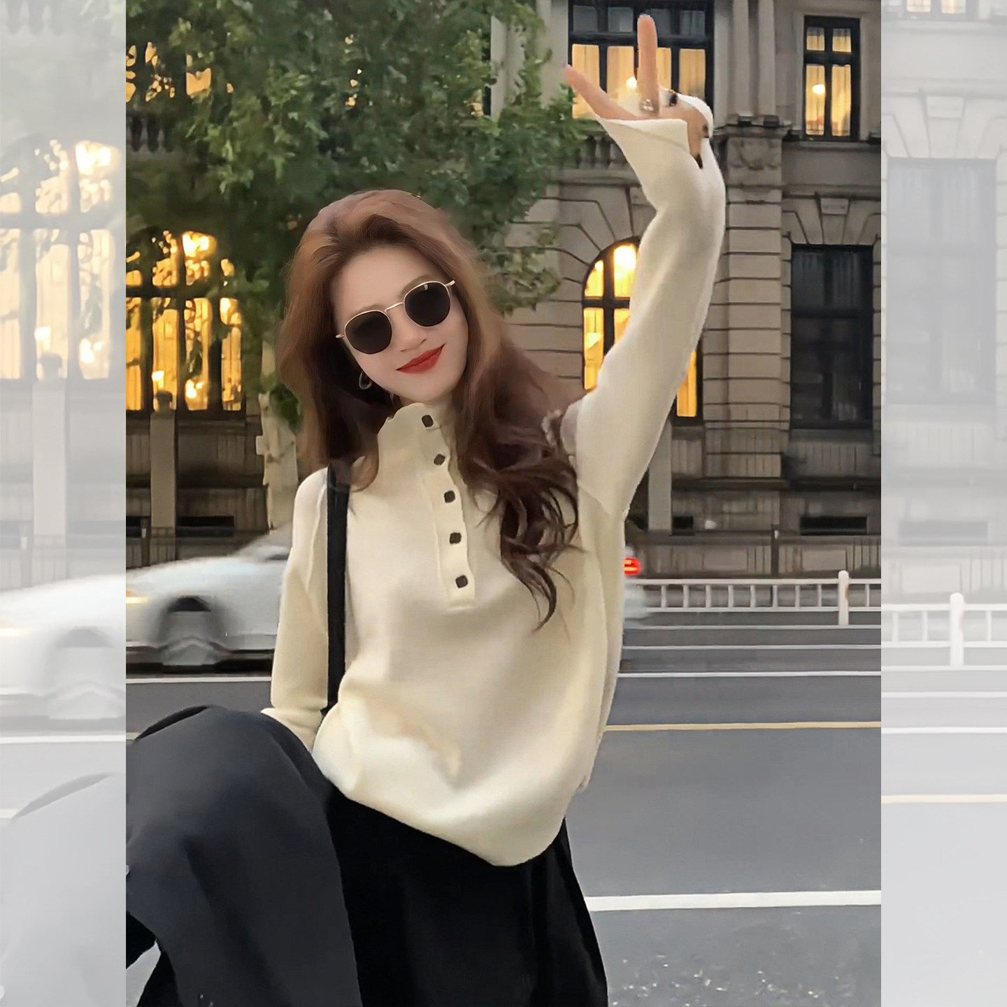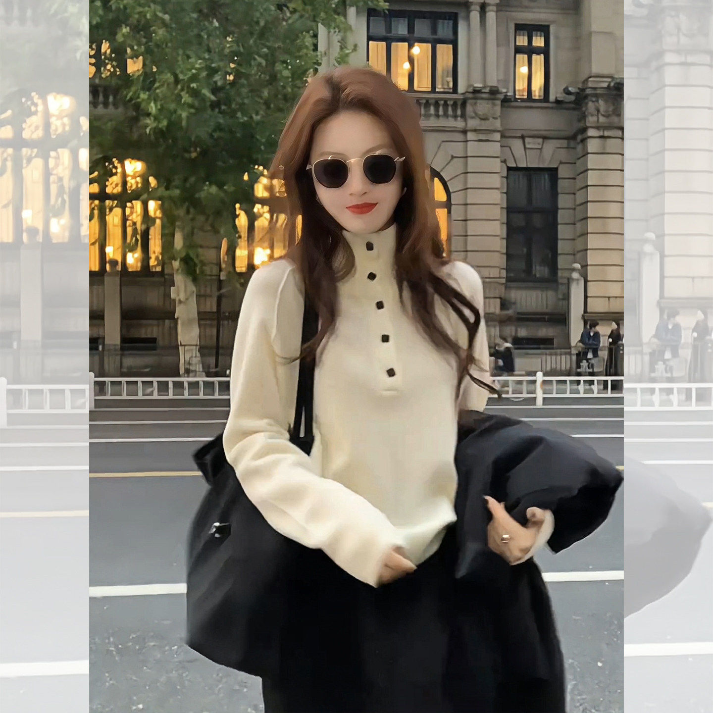 韩系穿搭白色高领针织打底衫女秋冬季宽松慵懒风毛衣内搭长袖上衣