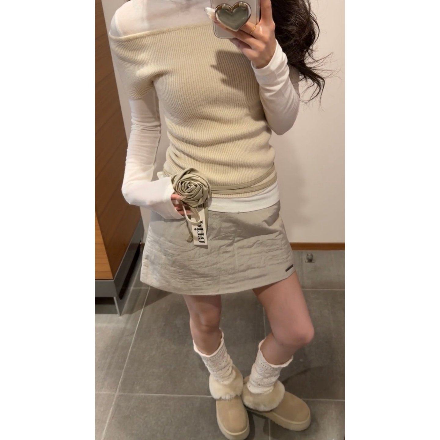首页> 女装> 2026巨好看搭配一整套韩系气质打底上衣一字肩针织衫显瘦半身裙