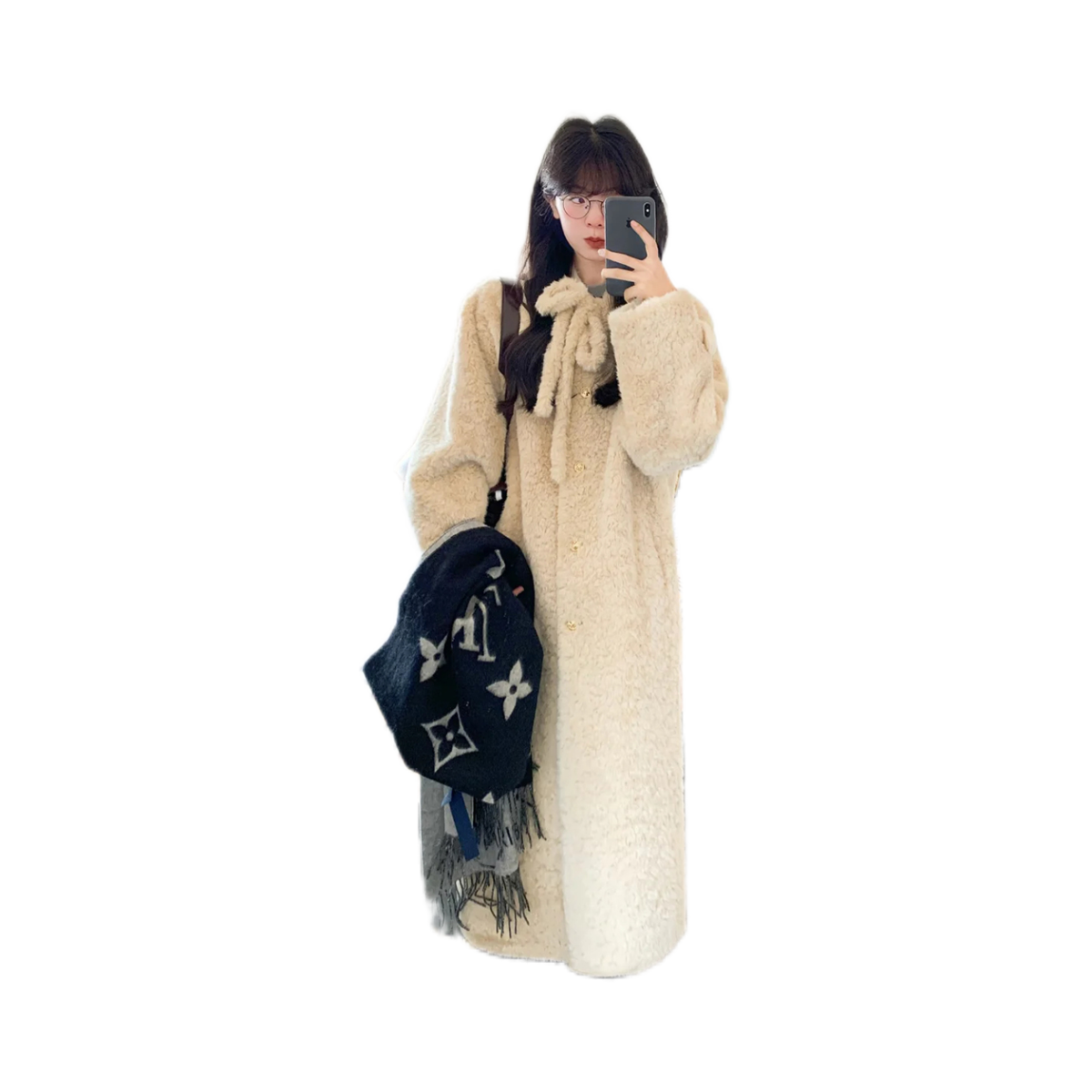 软乎乎可爱毛绒系带羊羔毛外套冬季新款小众慵懒风宽松保暖大衣女