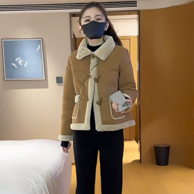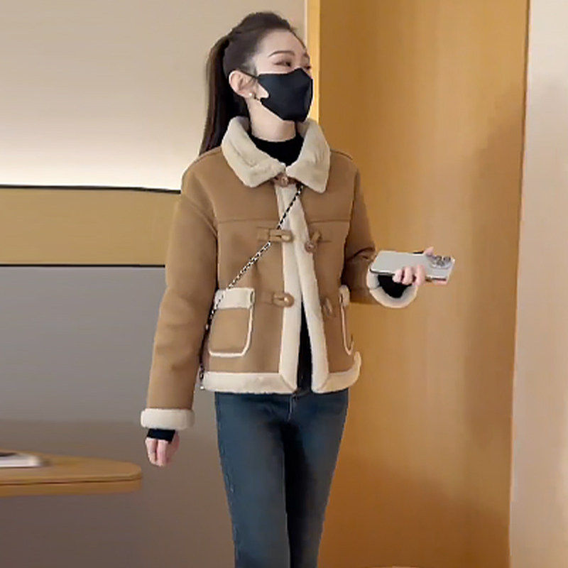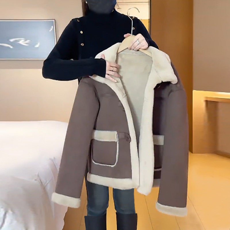 百搭洋气麂皮绒皮毛一体外套女2025秋冬季小个子保暖加厚长袖上衣