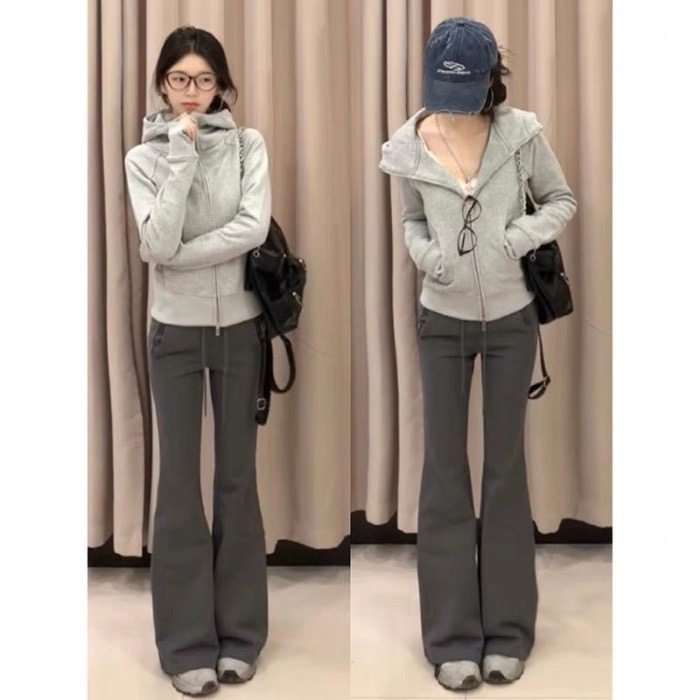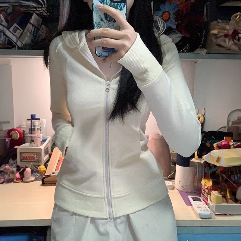 美式韩版时尚灰色修身卫衣外套女春秋新款小个子运动瑜伽拉链开衫