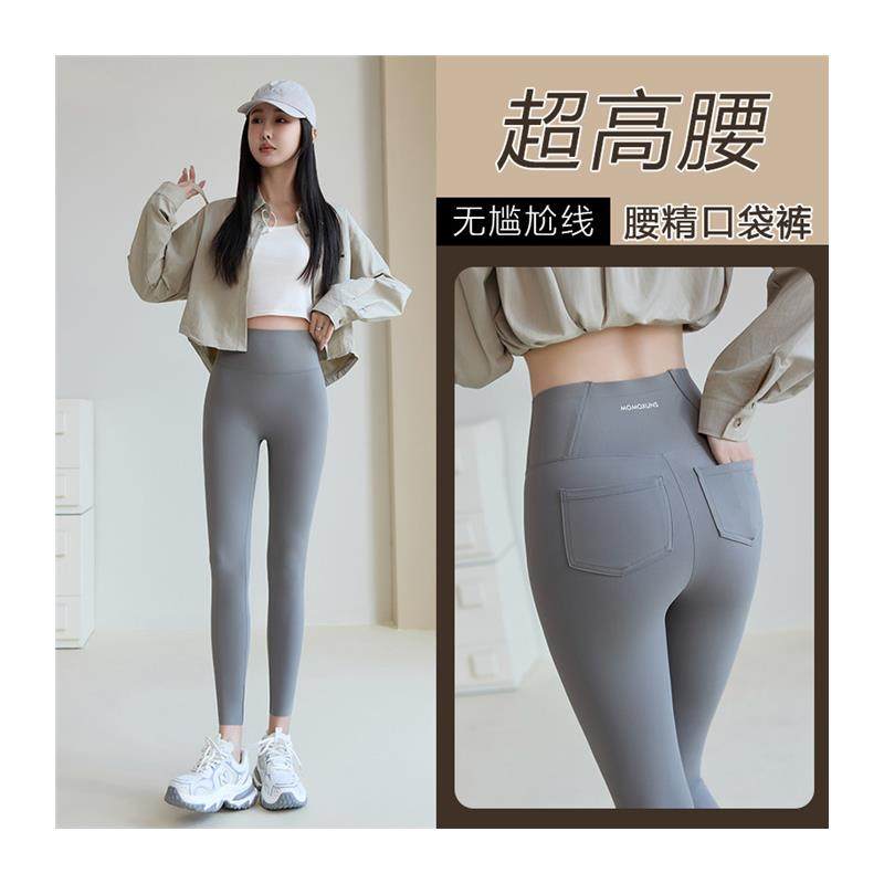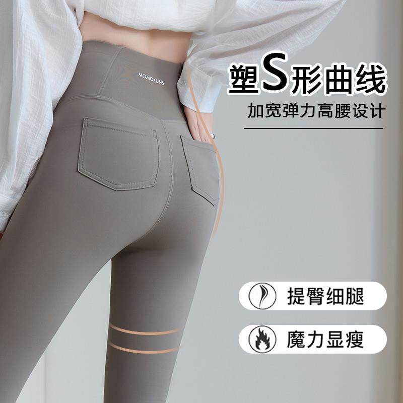 口袋灰色鲨鱼裤女春夏薄款2025新款高腰收腹提臀瑜伽芭比打底裤子