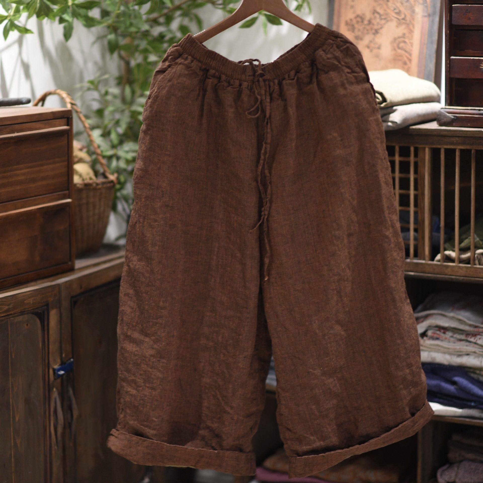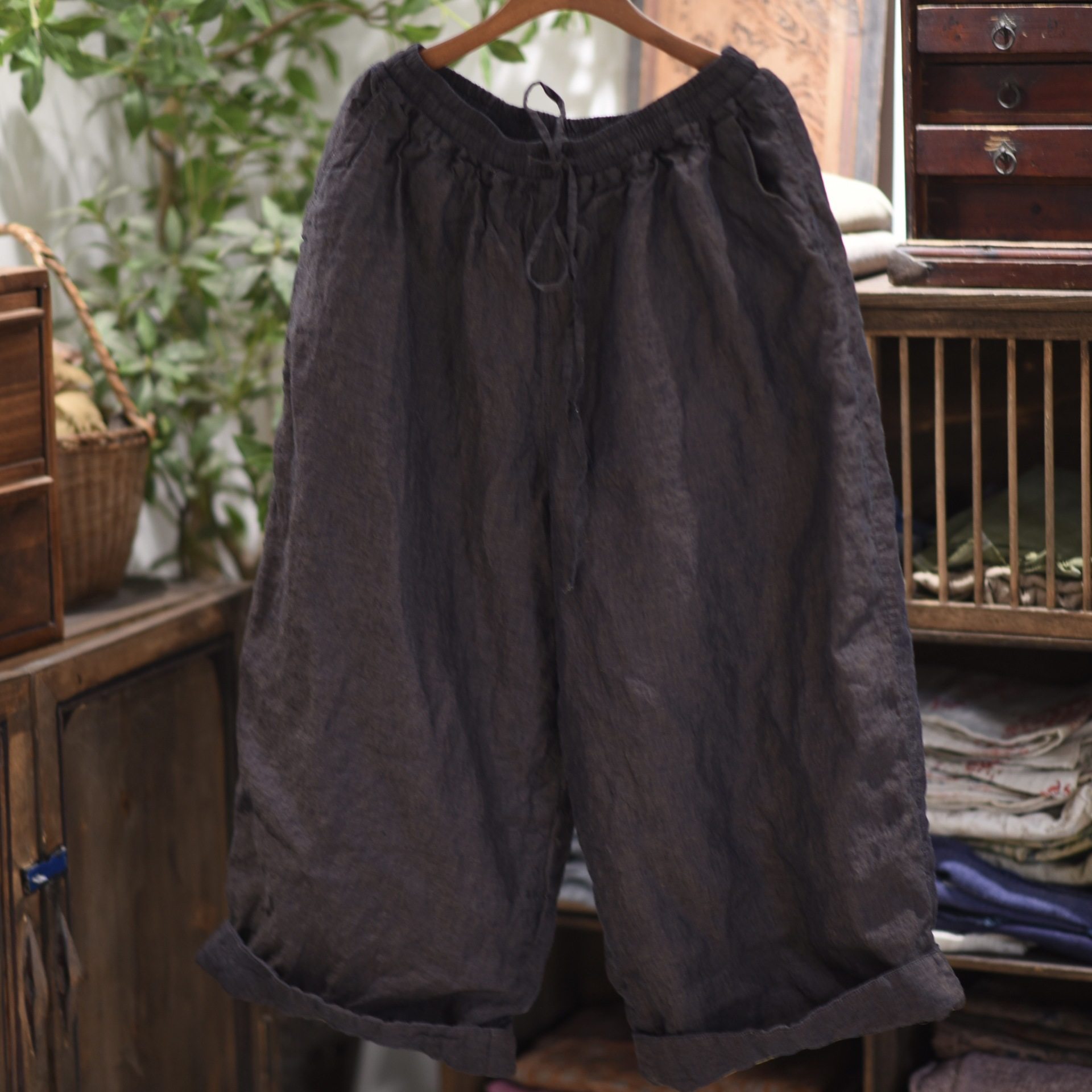 首页> 女装> 子曰原创复古色织亚麻夹棉保暖休闲裤松紧腰系绳宽松阔腿棉裤长裤