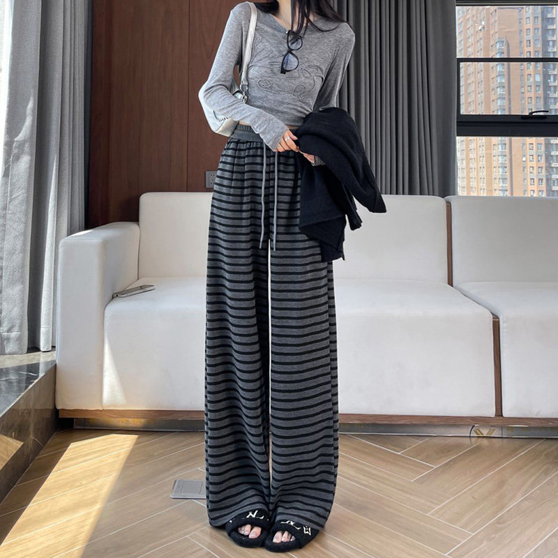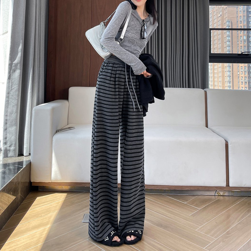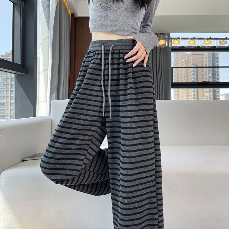 首页> 女装> 150小个子复古加绒条纹阔腿裤女秋冬加厚针织裤百搭休闲直筒长裤