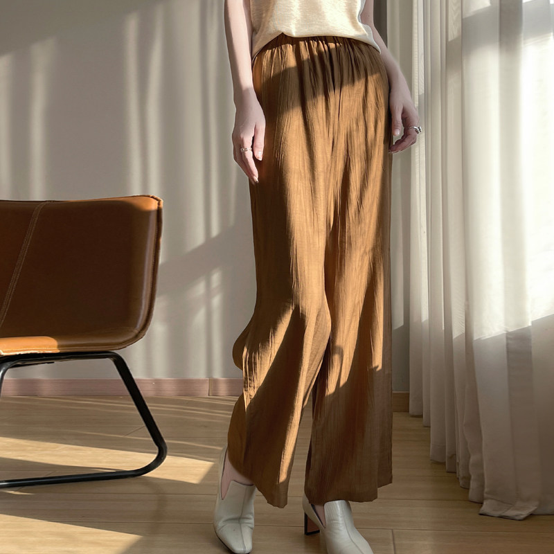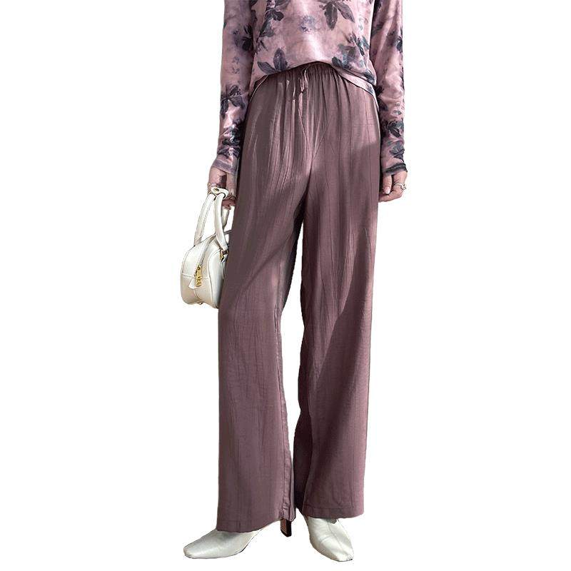 羊范春夏新款宽松显瘦直筒裤女高腰垂感阔腿裤薄款褶皱冰丝空调裤