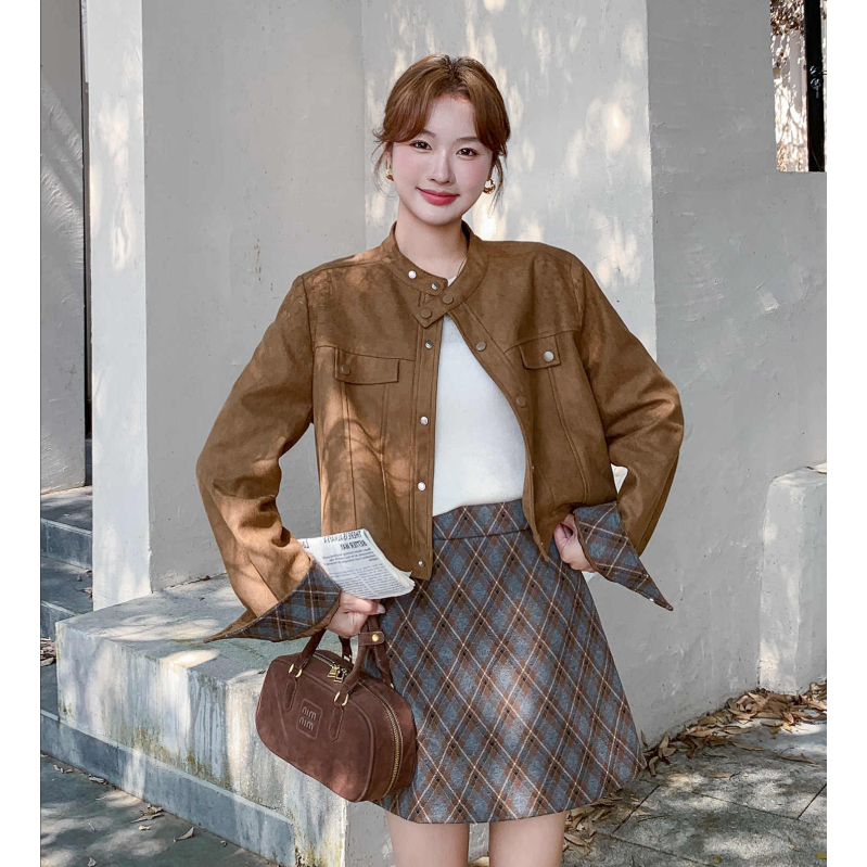 复古美拉德套装裙秋2025新款短外套格子短裙两件套QD82288