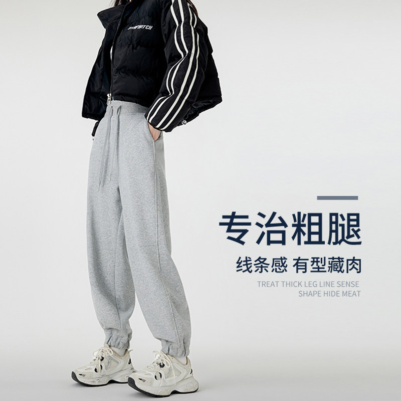 XVRV2026秋冬新款加绒宽松女束脚休闲卫裤跑步健身百搭显瘦长裤