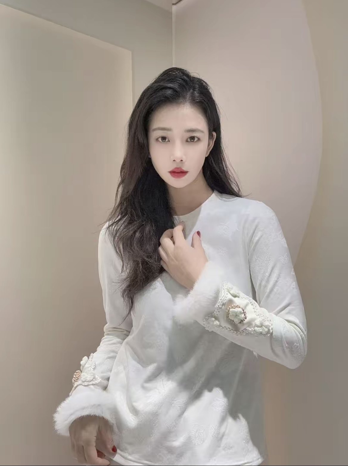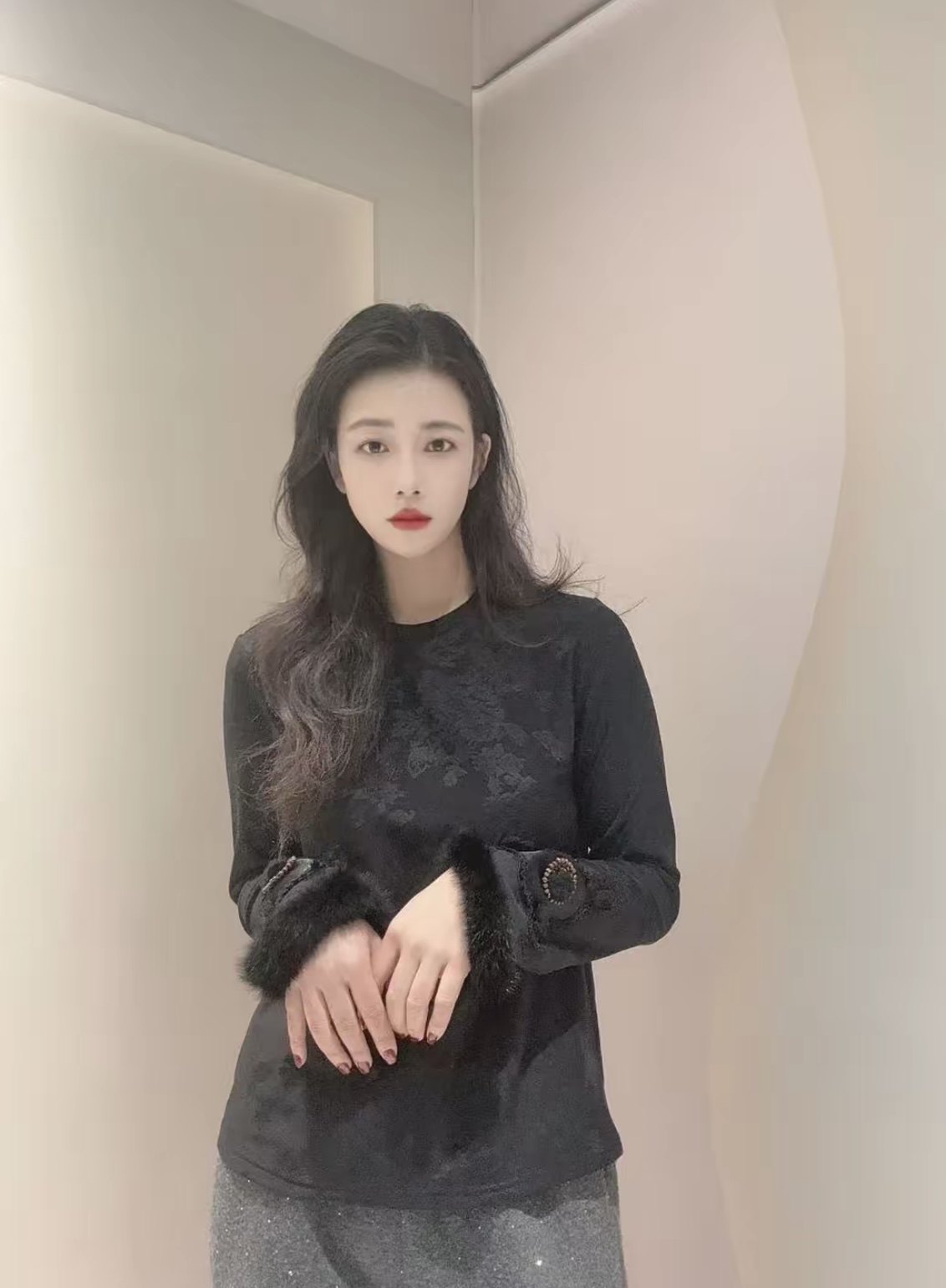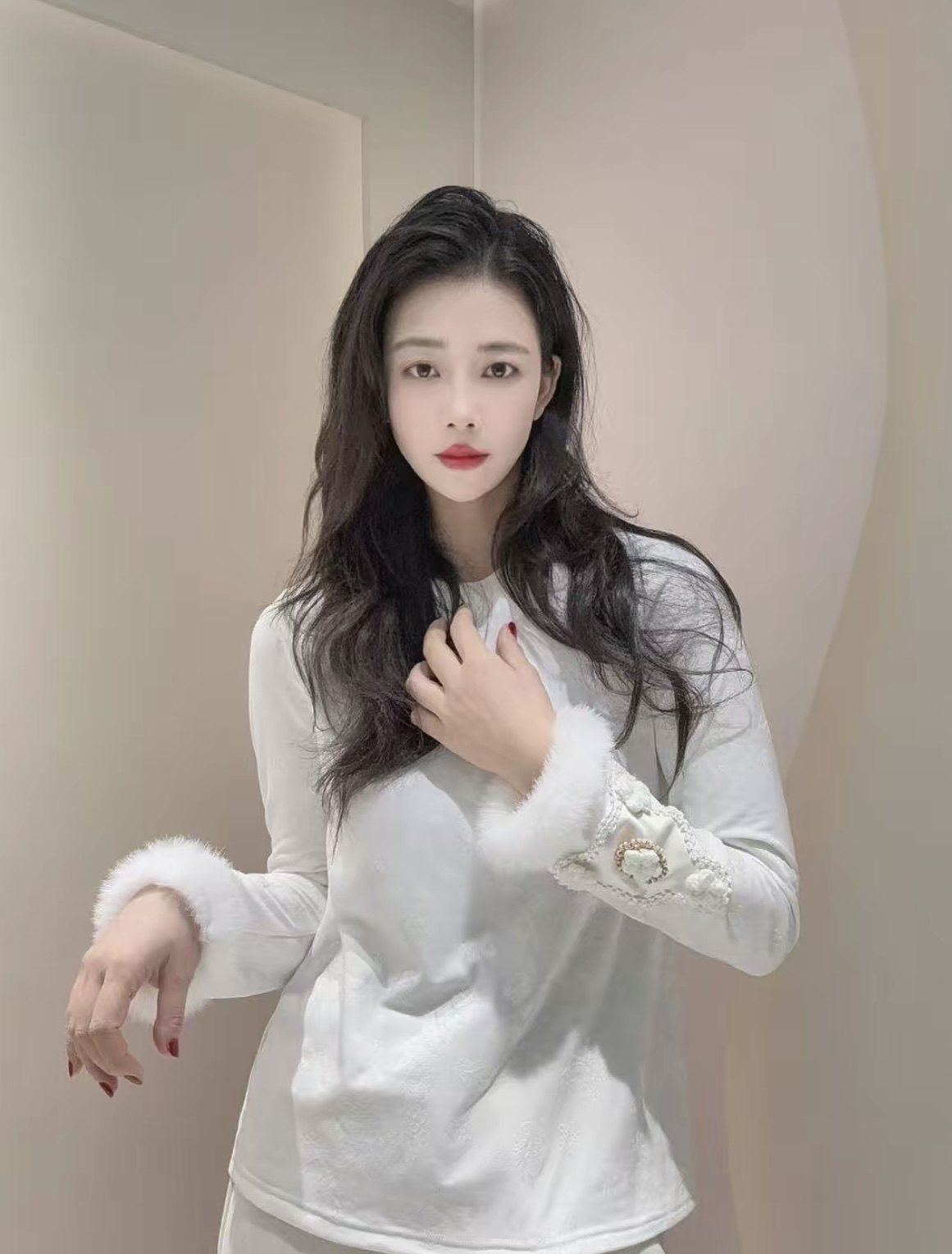 首页> 女装> 新中式国风拼接水貂毛打底衫软糯保暖加绒上衣女内搭减龄小衫女冬