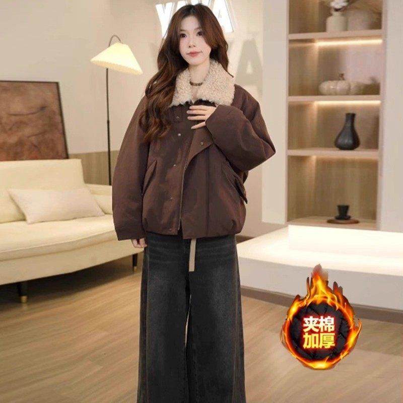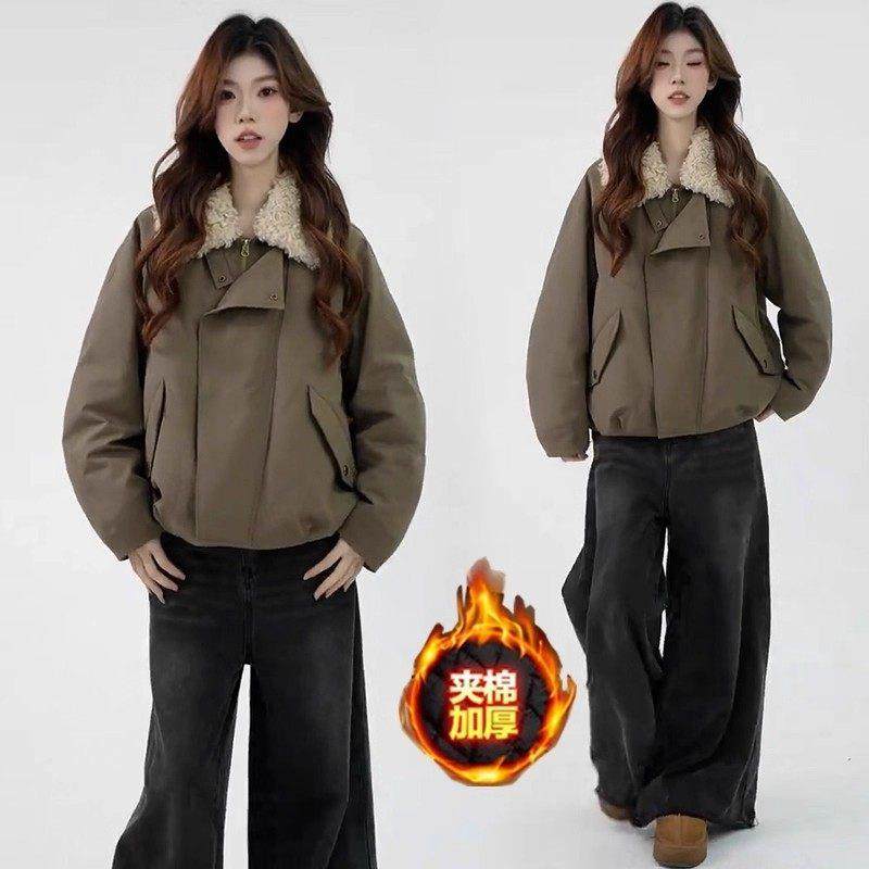 香港代购时尚派克服棉衣女冬季新款洋气质保暖羊羔毛翻领棉袄外套