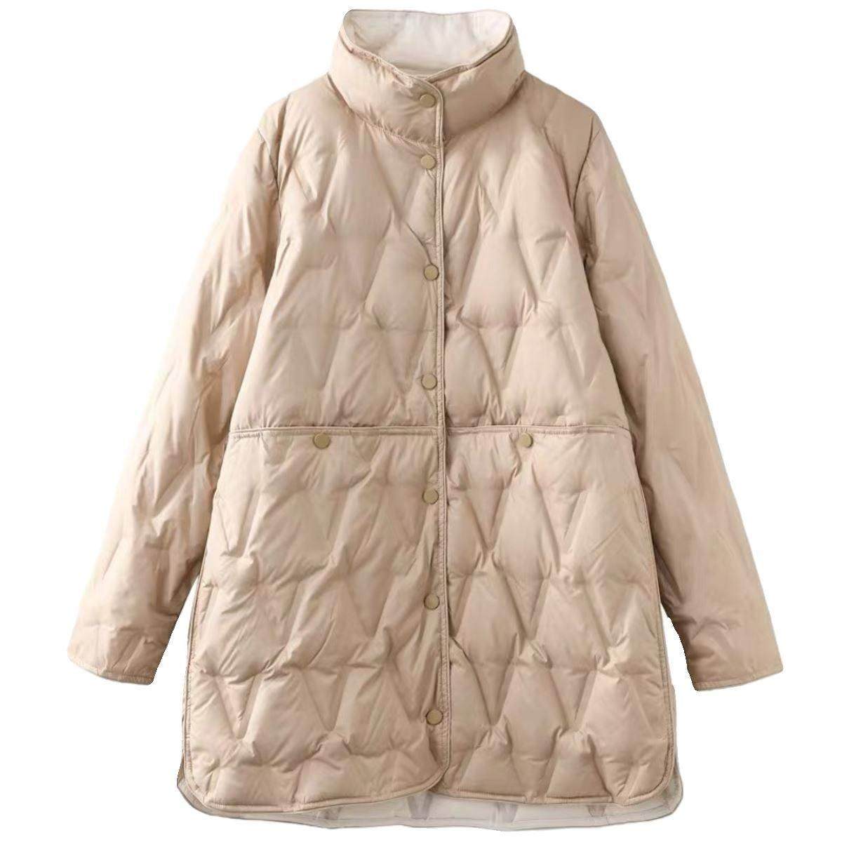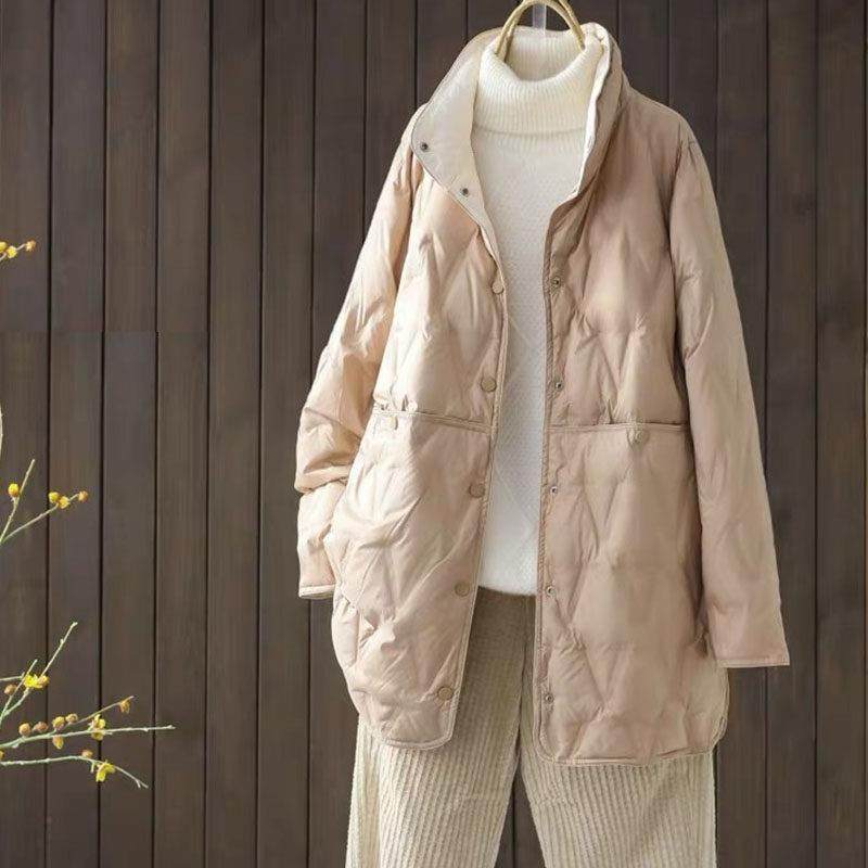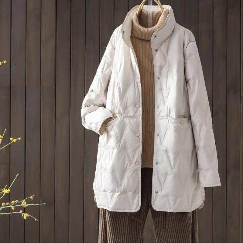 首页> 女装> 潮牌轻薄两面穿羽绒服女中长款2025秋冬季小个子大码宽松立领外套
