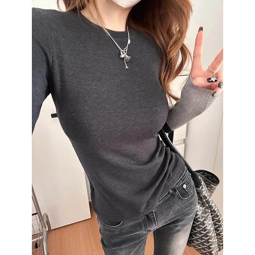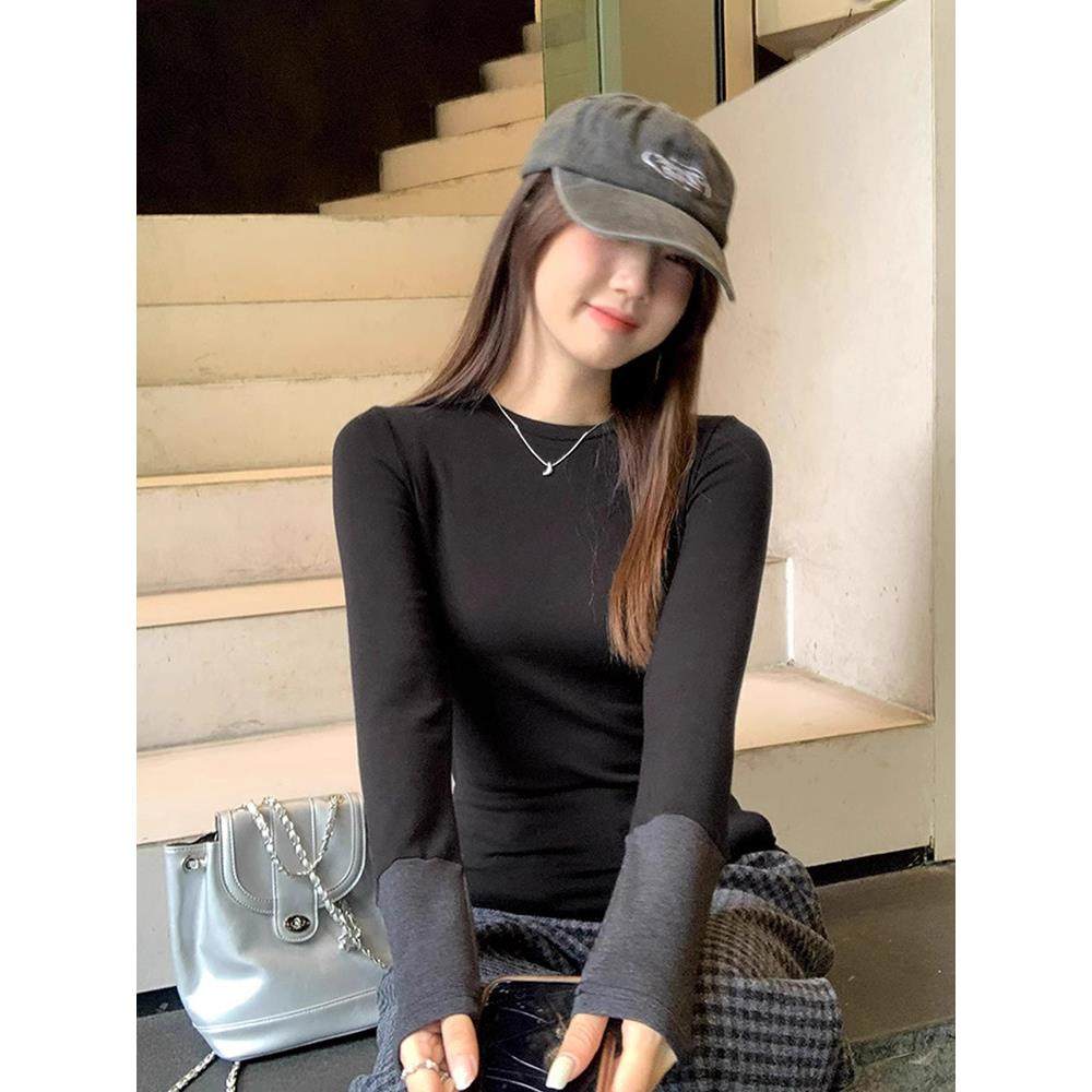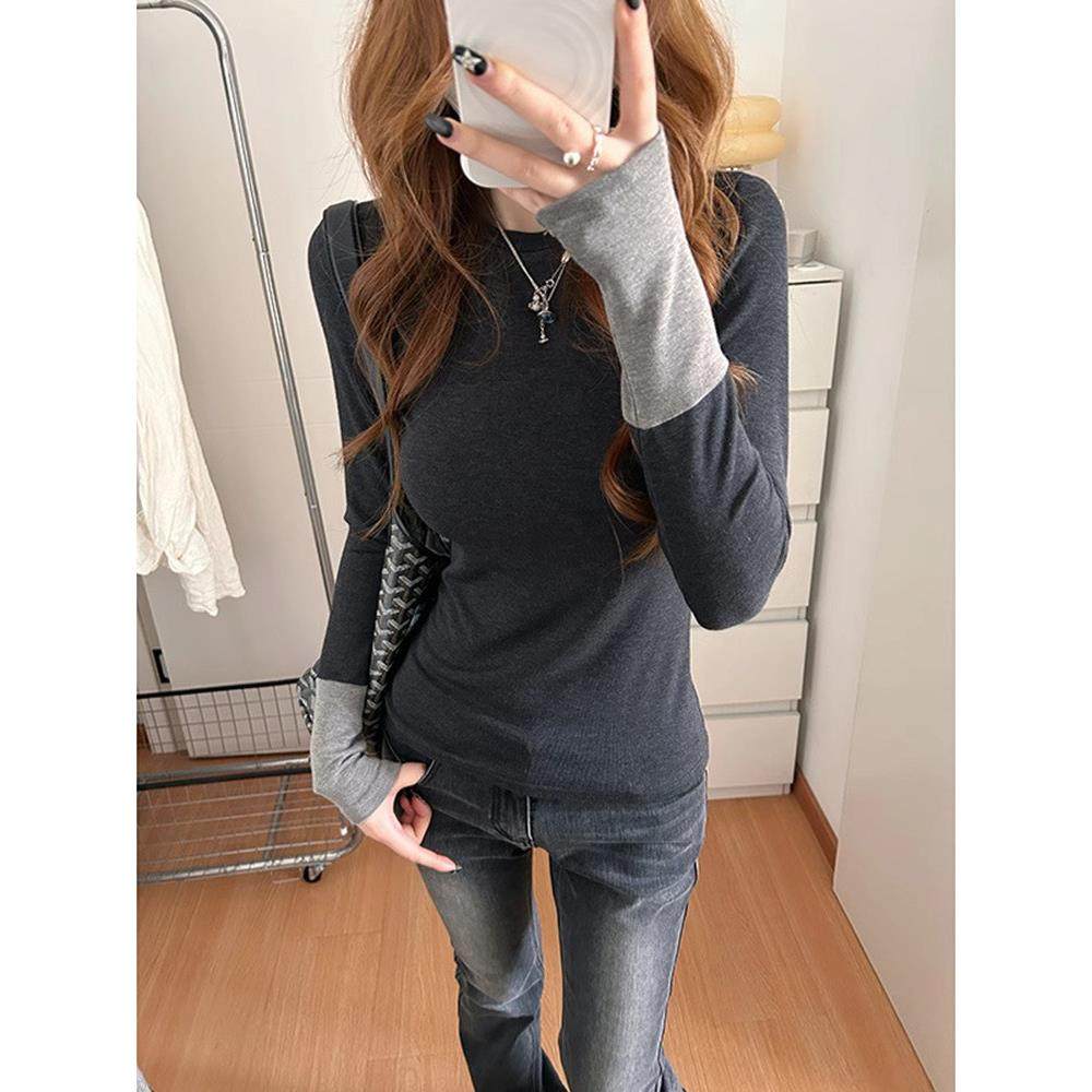 首页> 女装> 2025春秋新款撞色长袖t恤女显瘦内搭气质别致圆领修身绝美打底衫