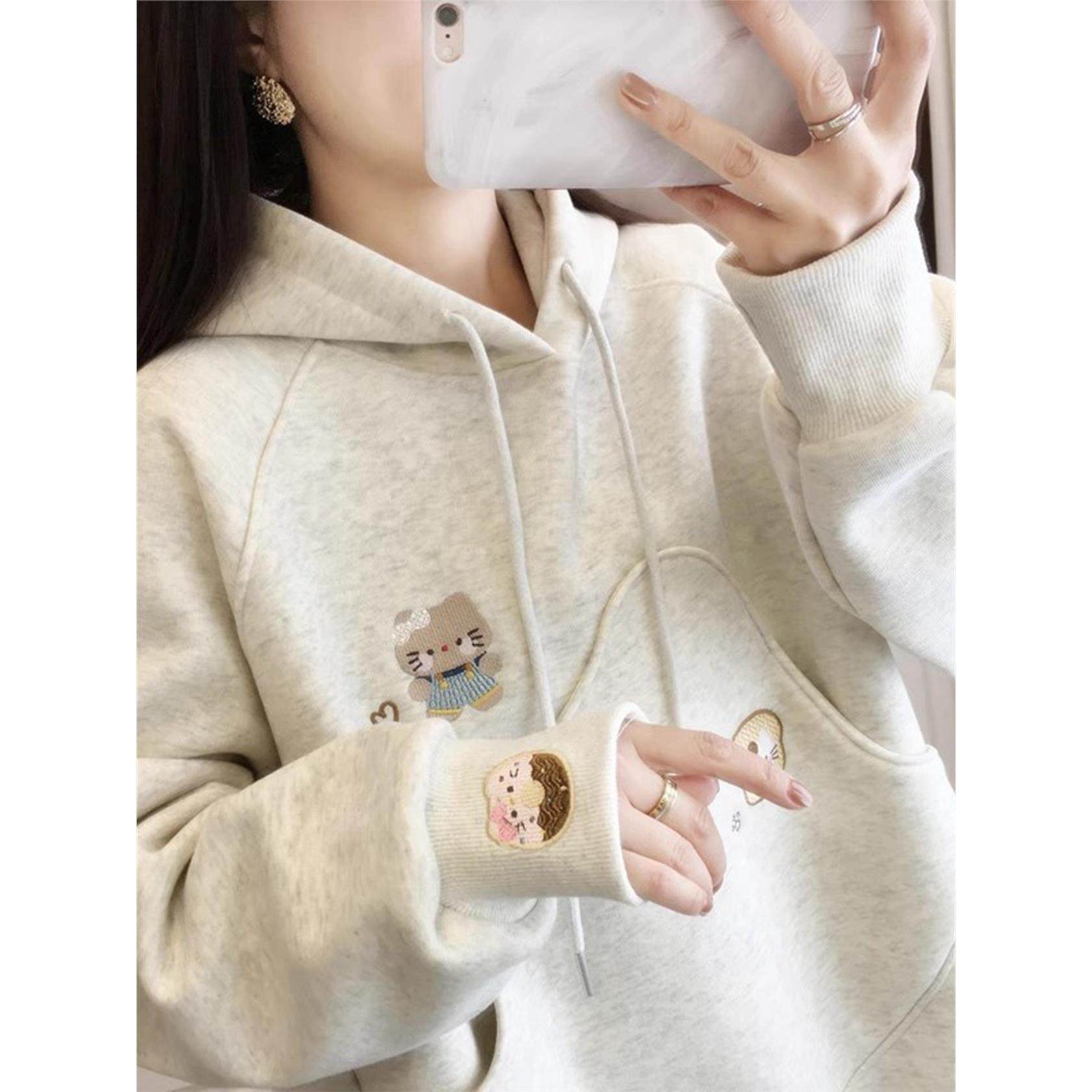 秋季女士加厚加绒连帽卫衣冬装新款2025爆款时尚洋气宽松上衣外套