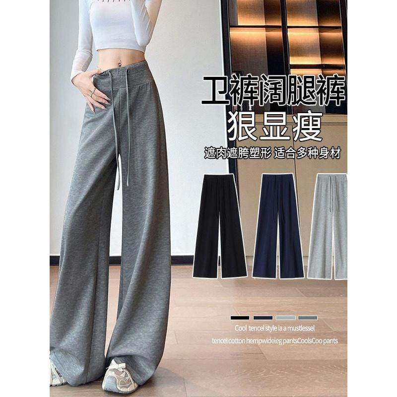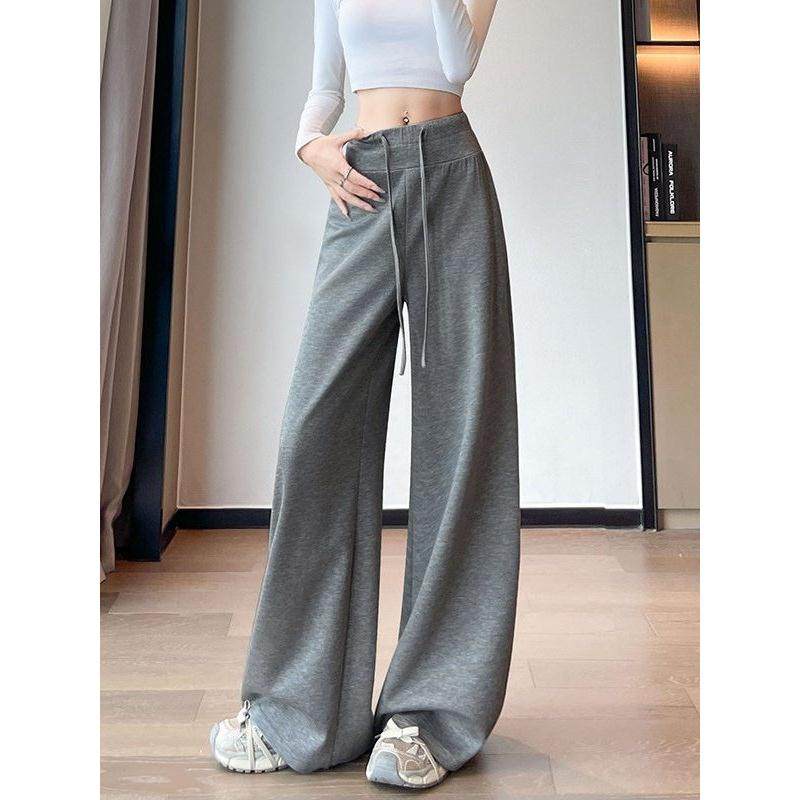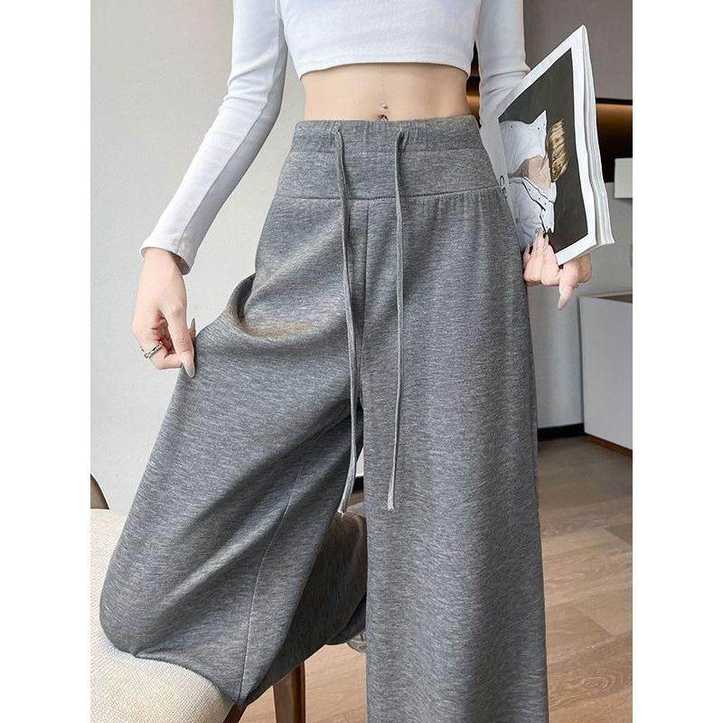 韩国灰色美式运动裤女装秋季高腰慵懒阔腿裤宽松拖地休闲运动裤子
