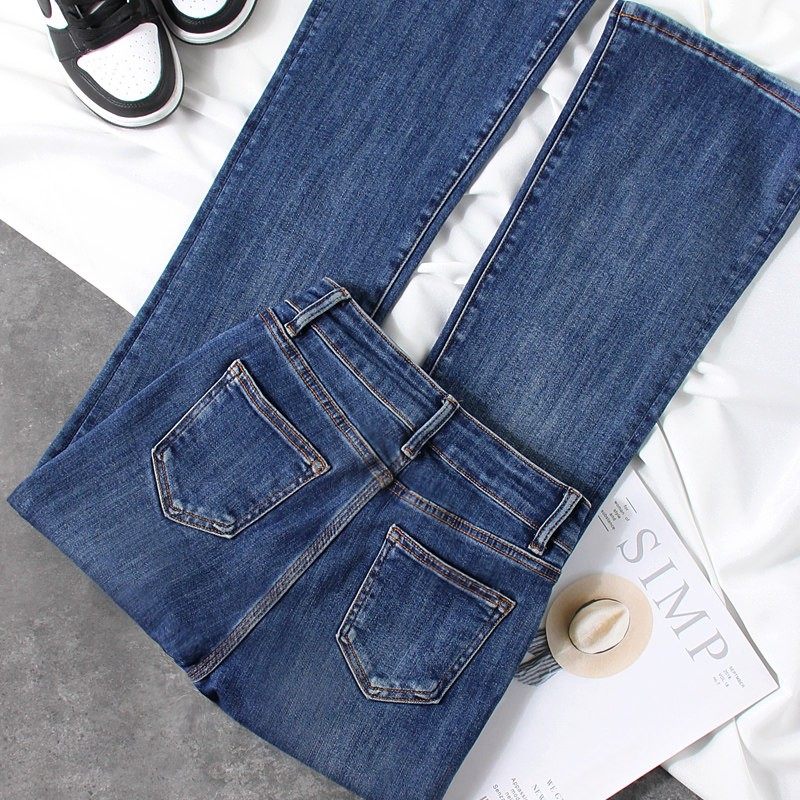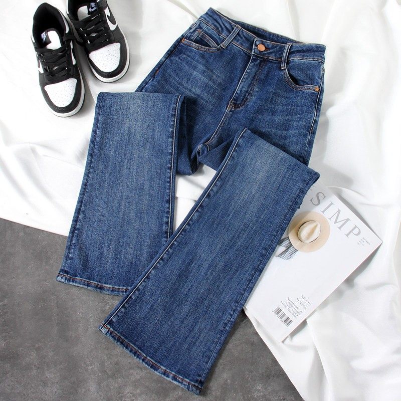 2025春秋新款喇叭裤女高腰显瘦修身弹力复古九分微喇牛仔拖地长裤