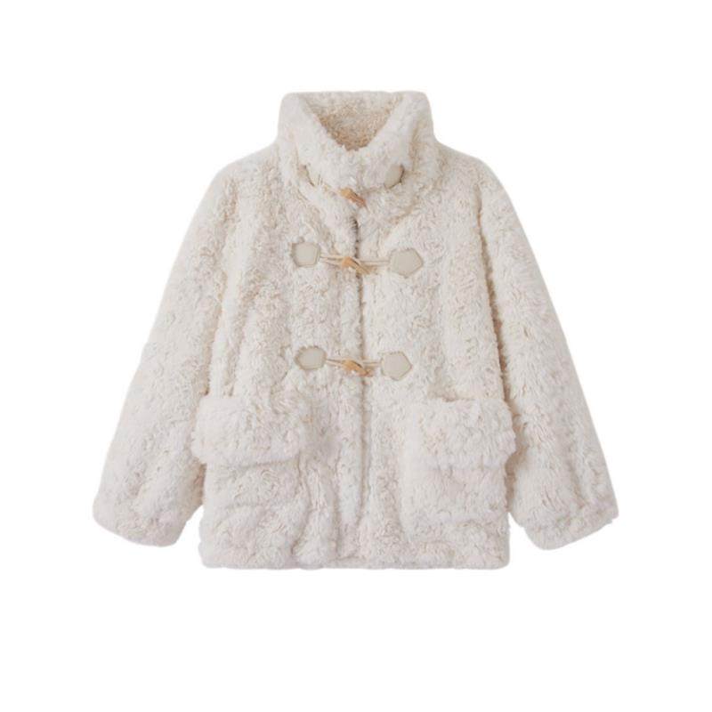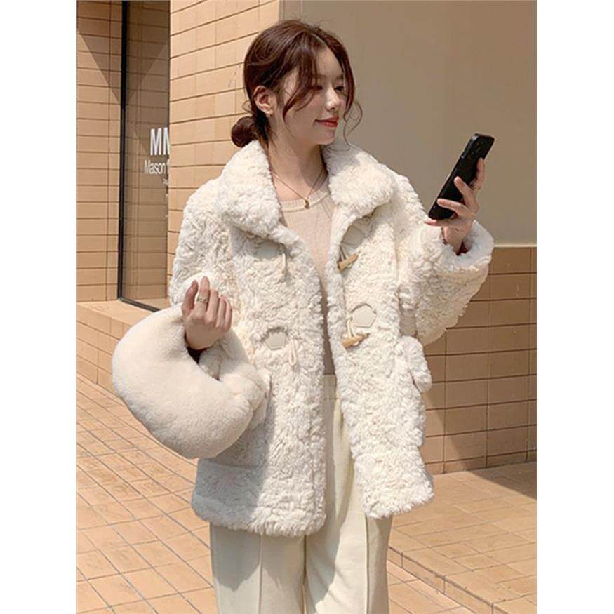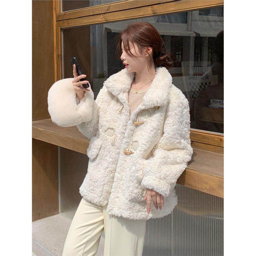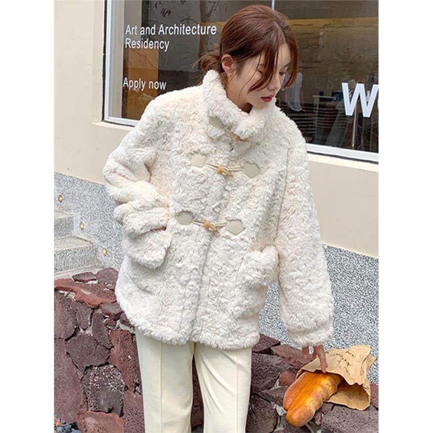 2025冬季新款牛角扣羊羔毛绒皮草毛毛外套女百搭宽松小香风毛大衣