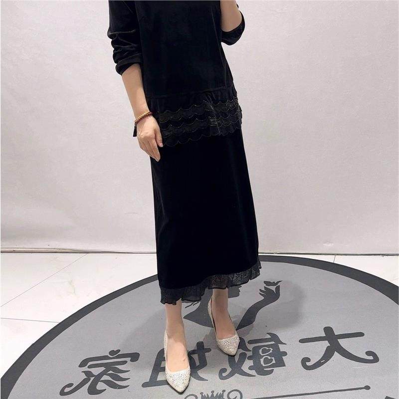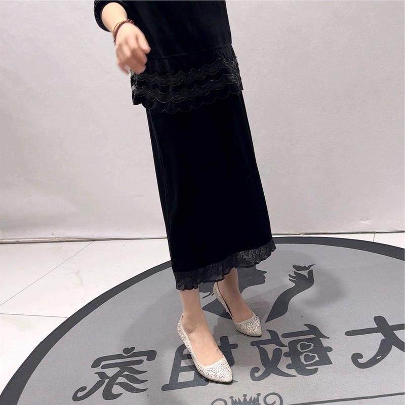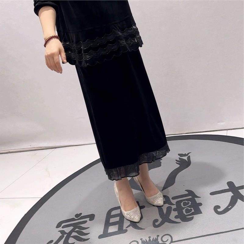 2026春装新针丝缘时尚潮流丝绒半身裙加大码女装200斤裙子女5479