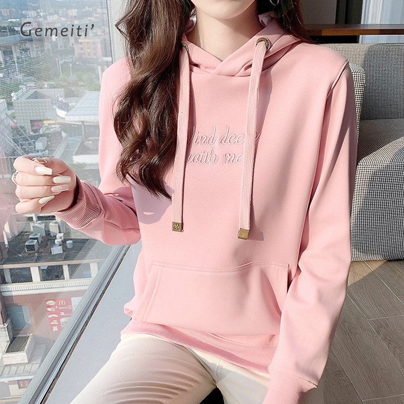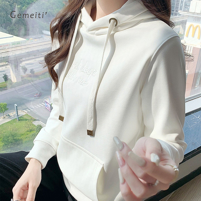 连帽套头休闲 上衣女秋冬纯棉加绒修身显瘦短款小个子打底内搭加