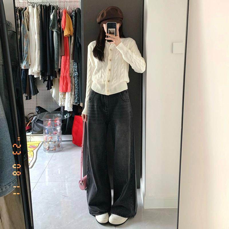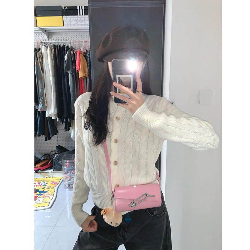 白色短款lctqazws麻针开衫女春季春花秋学院织风修身套内搭打底毛
