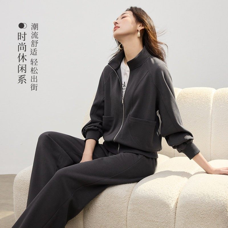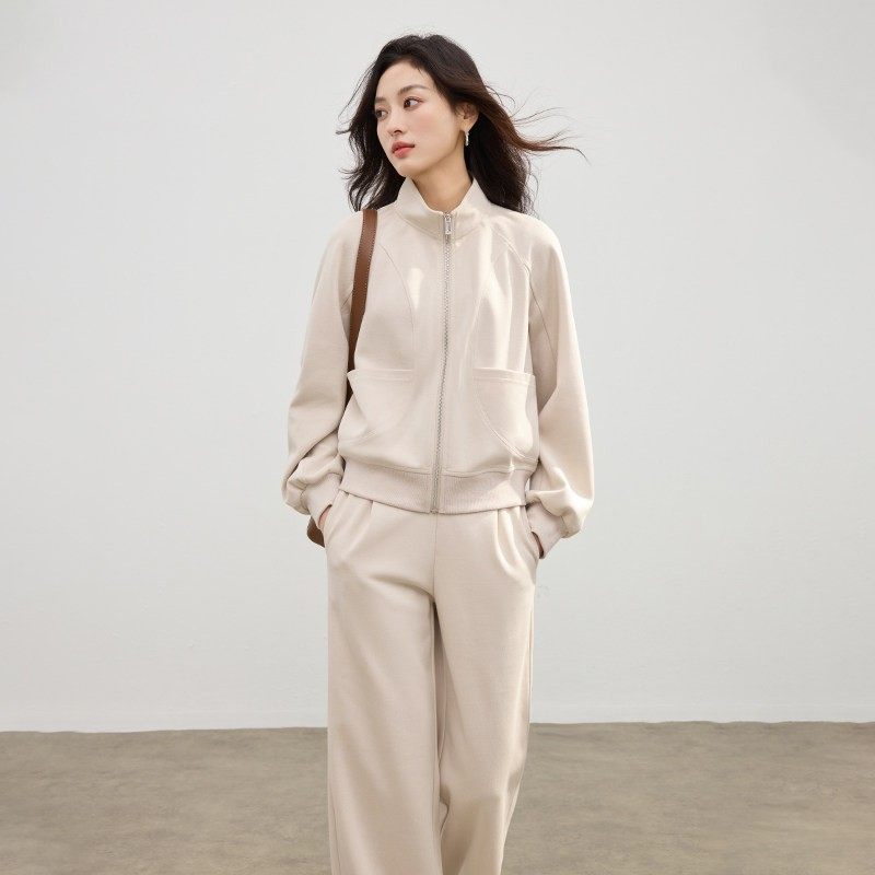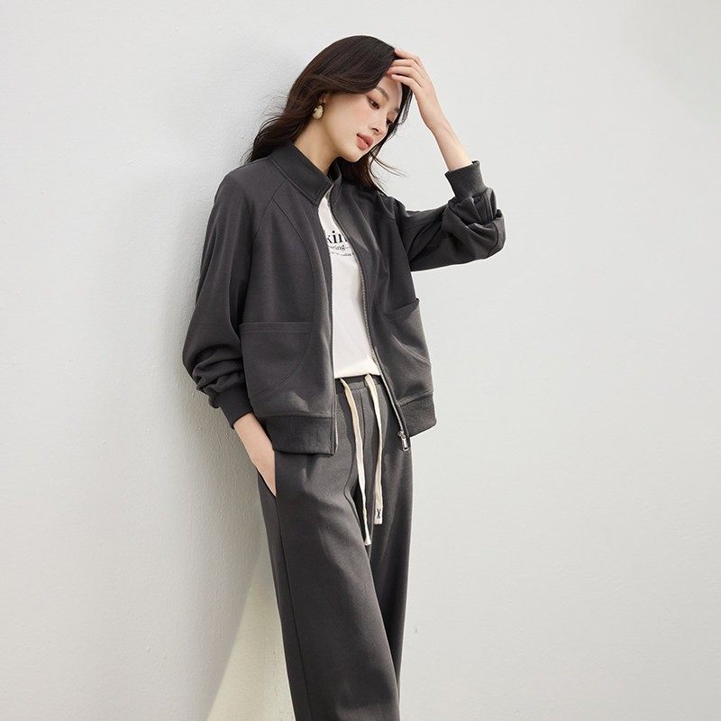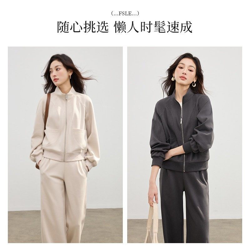 立领卫衣套装女2025秋新款宽松通勤早八慵懒风时尚休闲运动两件套