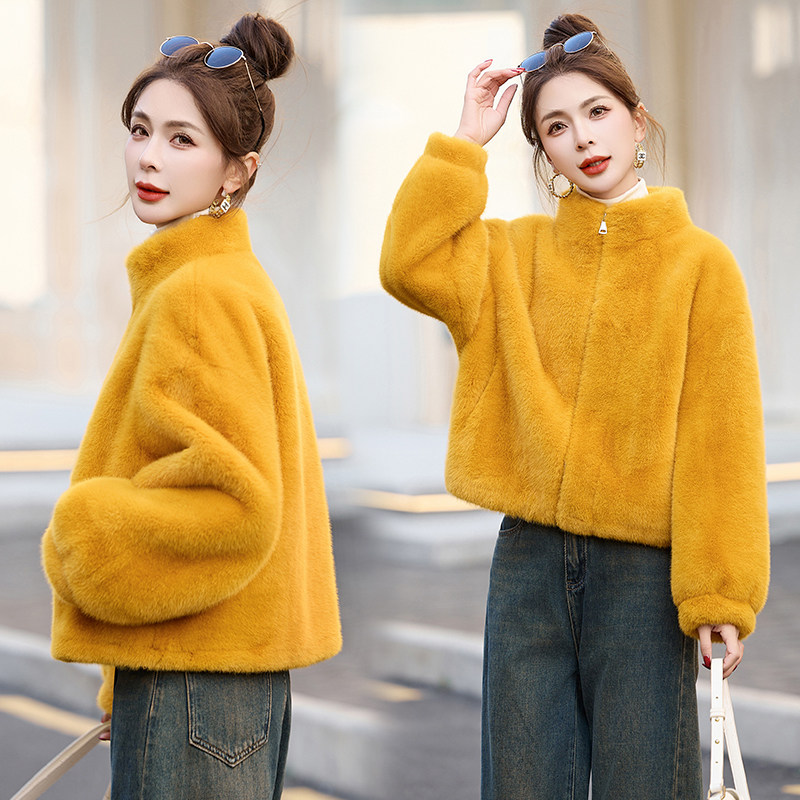 小个子毛绒水貂皮毛一体外套女2026春季洋气高级感流行显瘦仿皮草