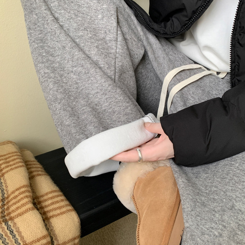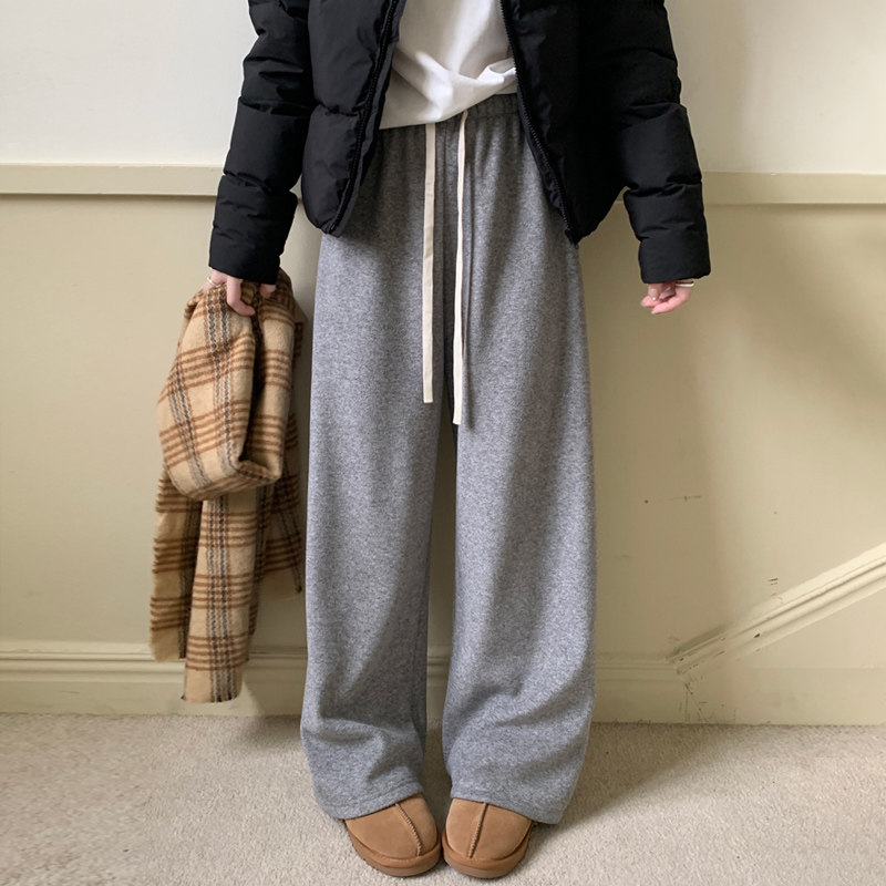 首页> 女装> 150小个子杏色糯米毛巾裤女冬季加绒加厚抽绳宽松休闲阔腿直筒裤