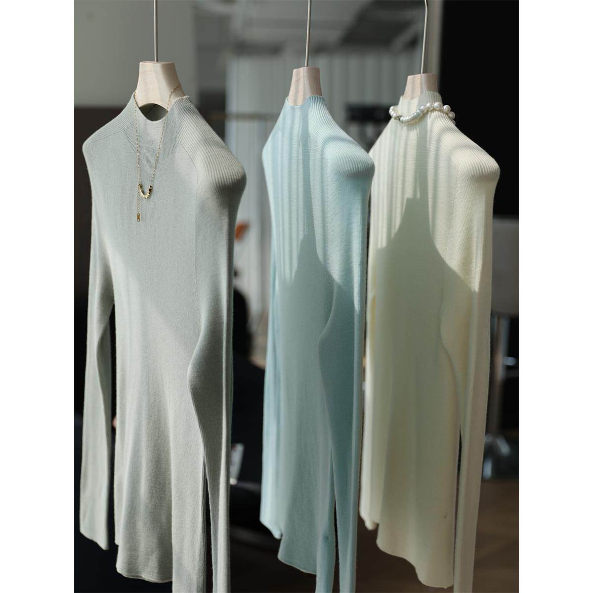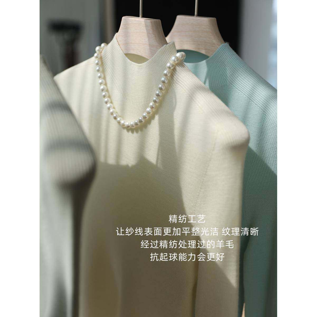 可机洗48支高密双股精纺全羊毛衫半高领无缝打底加厚针织衫女秋冬