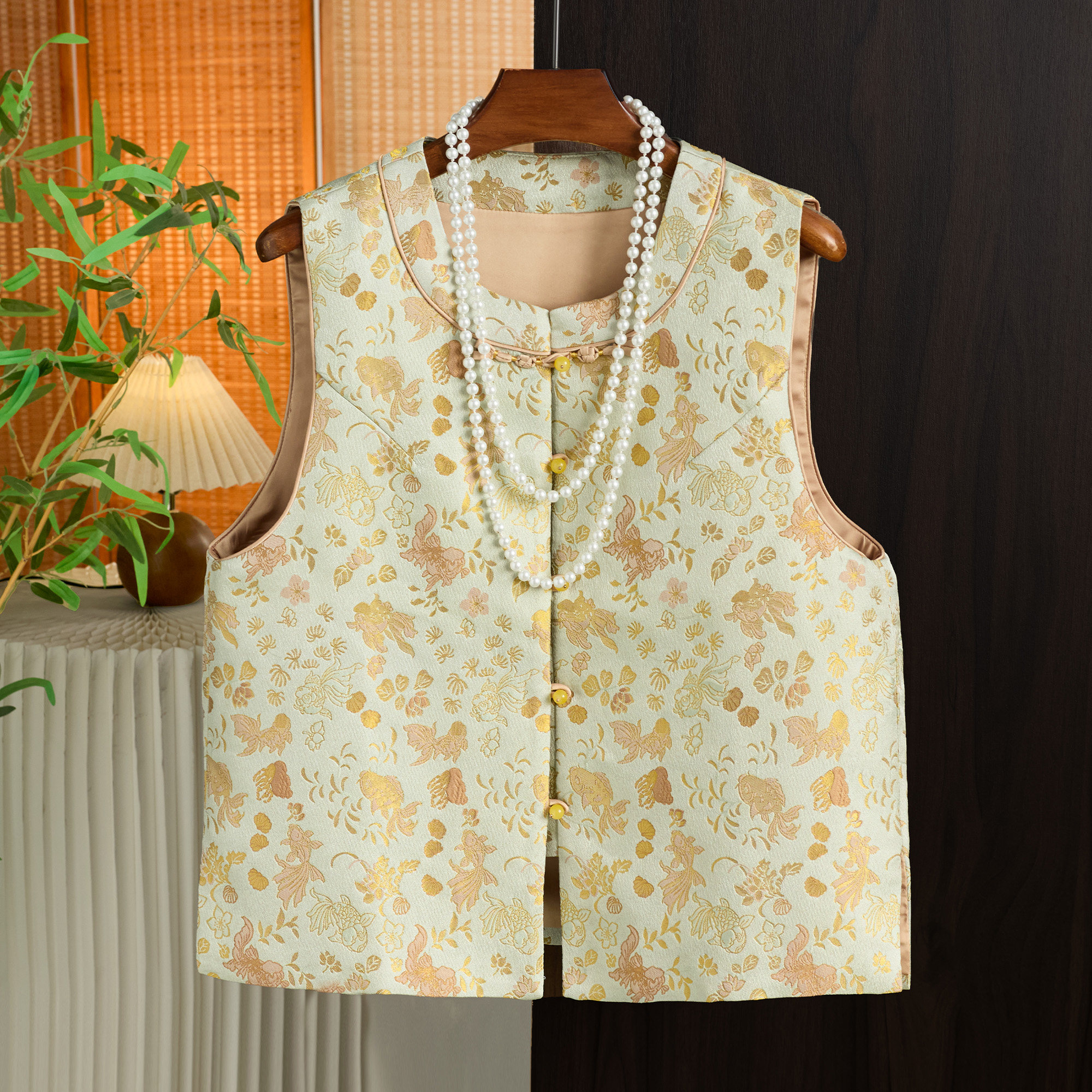 新中式高端宋锦马甲背心女2026春季新款轻国风金鱼爆款唐装上衣