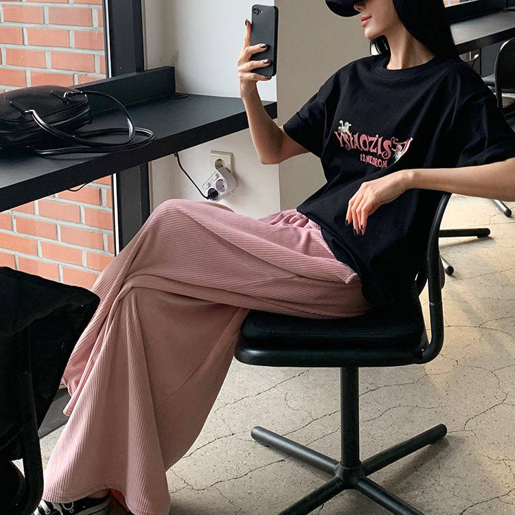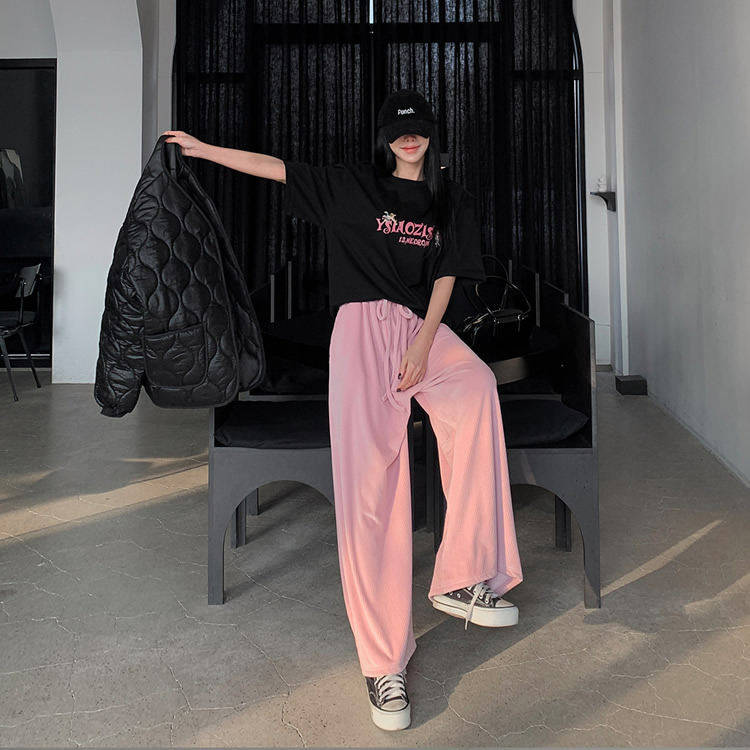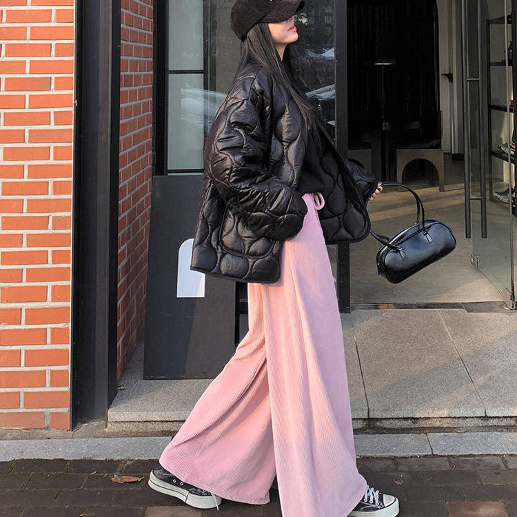 时尚起义韩国潮范2026春天鹅绒条绒阔腿加绒宽松休闲裤dp26012302