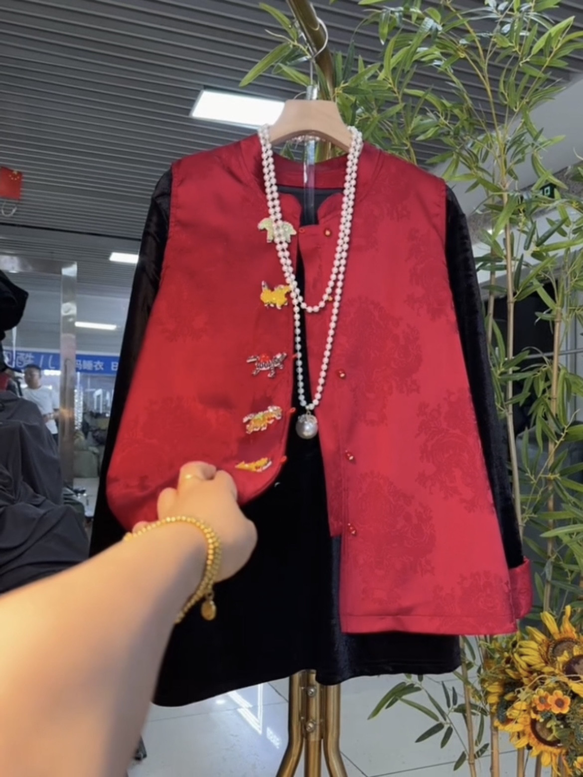 秋冬大码女装新中式国风重工纽扣马甲打底衫套装减龄内搭外穿小众