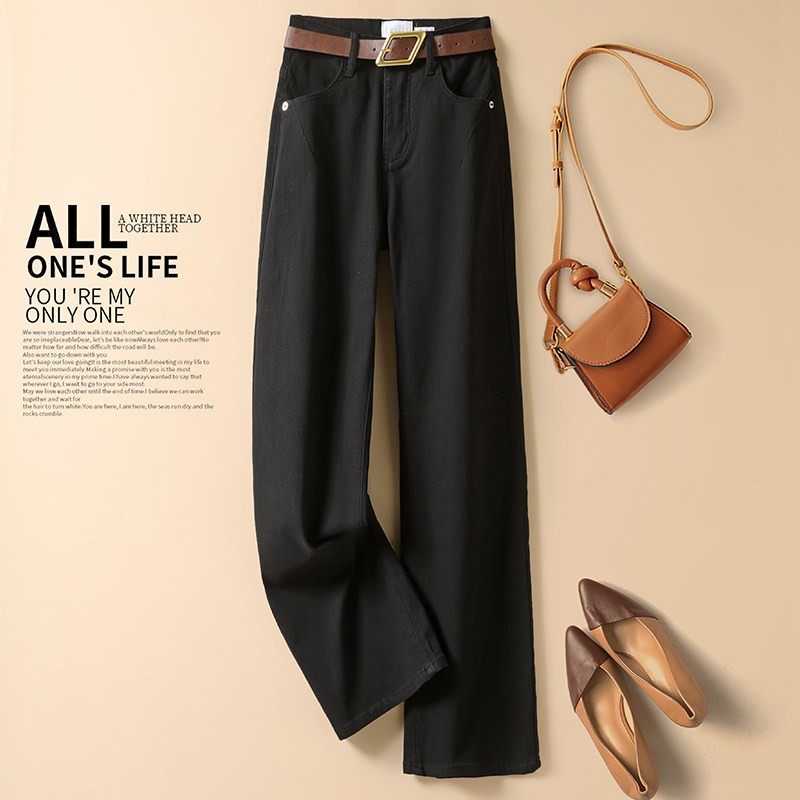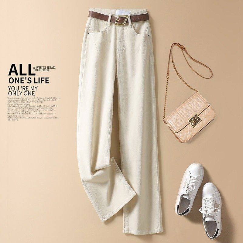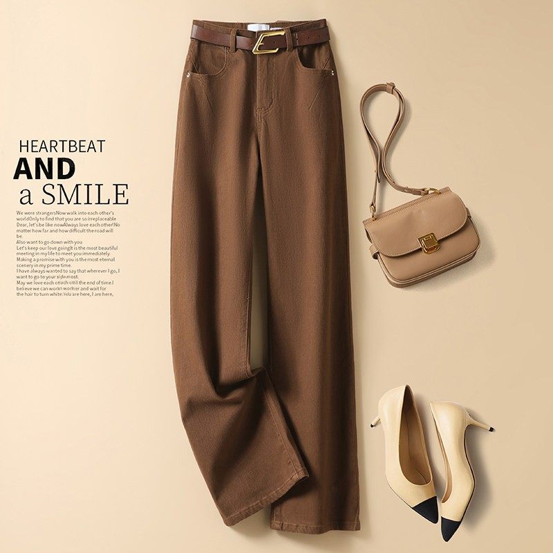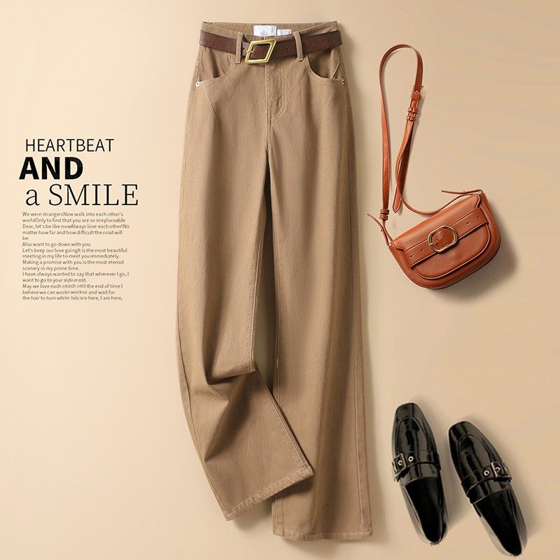 卡其色牛仔裤女2025春秋新款高腰裤子女春季窄版直筒休闲裤阔腿裤