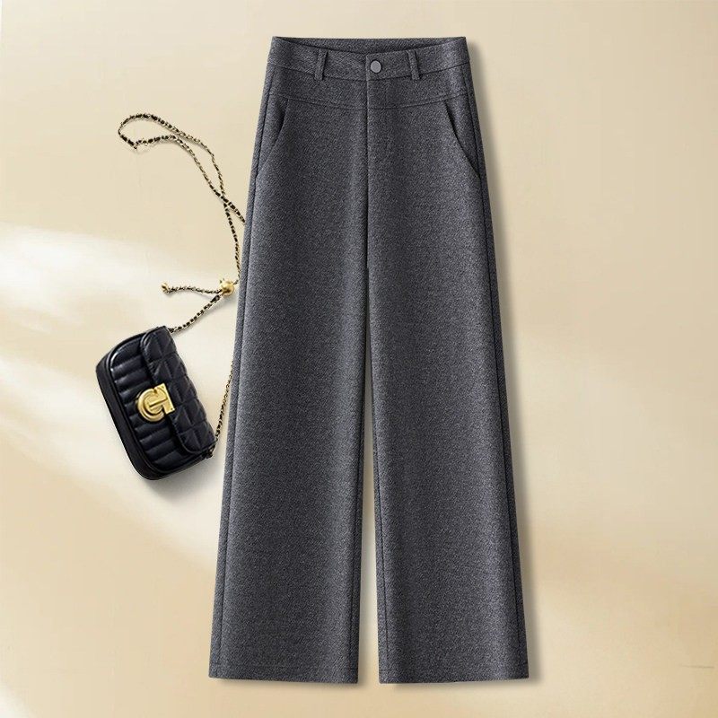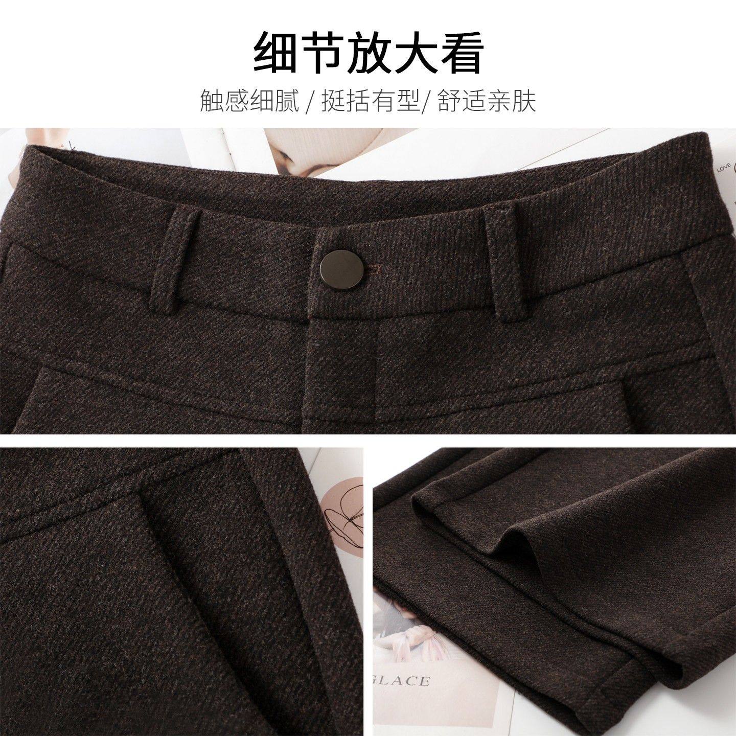 高级感咖色羊绒阔腿裤女秋冬2025新款慵懒风垂感羊毛呢糯米直筒裤