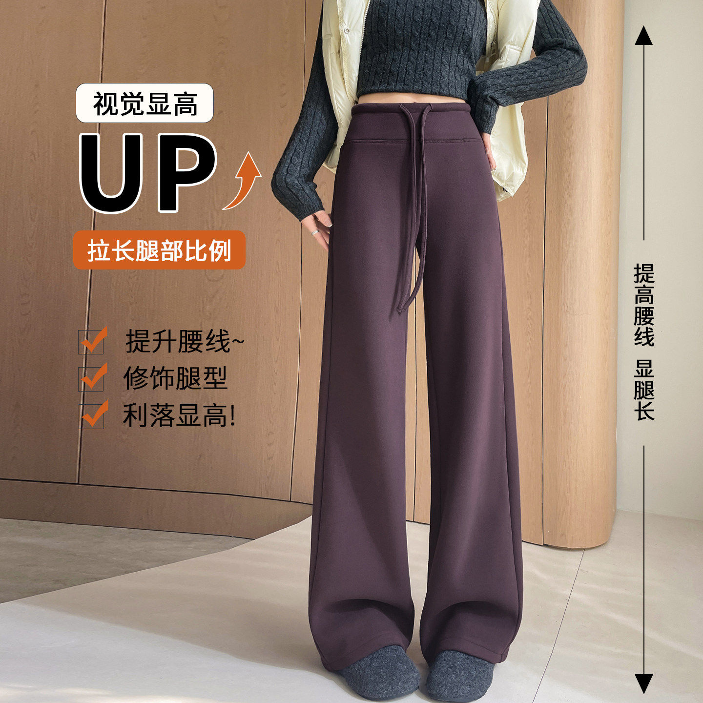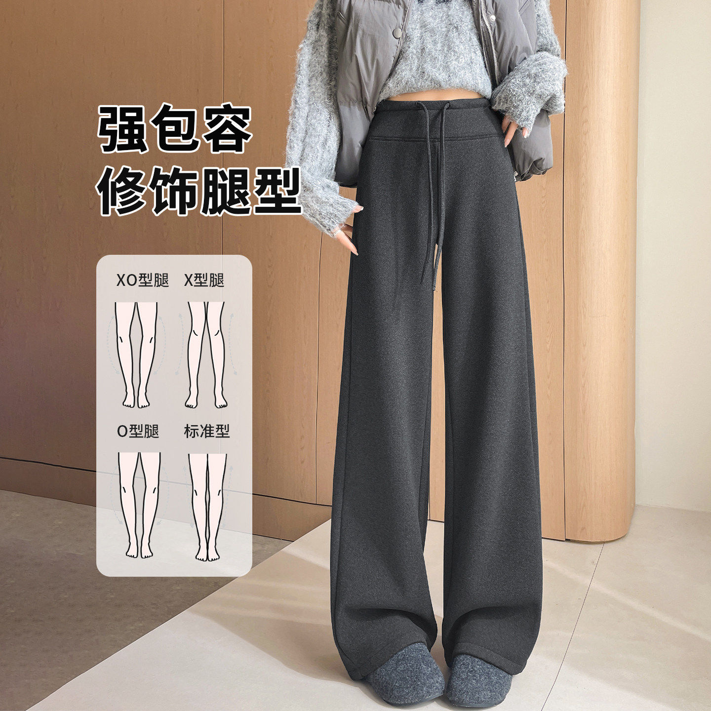 藏青色加绒防风裤女秋冬2025新款垂感直筒加厚微喇面膜阔腿卫裤子