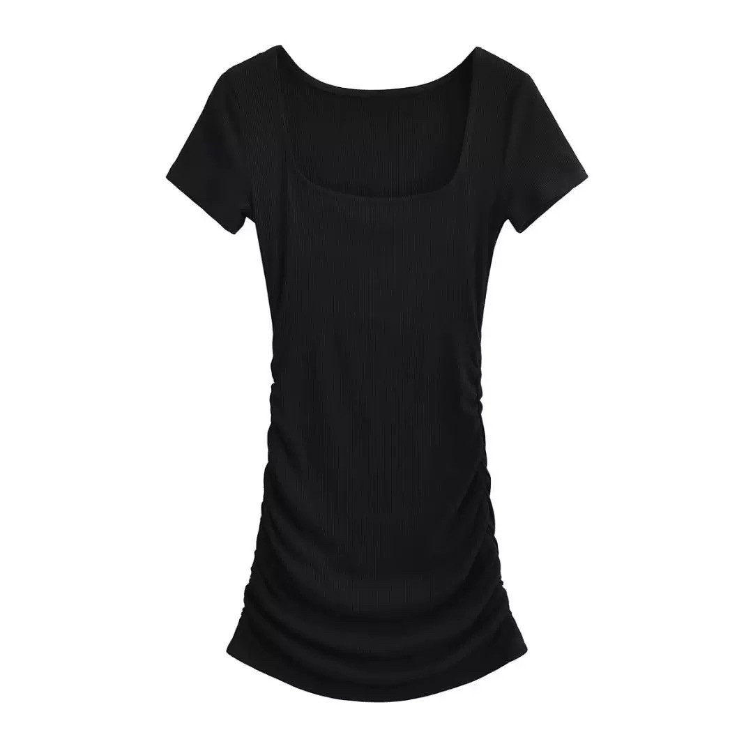 u领红色连衣裙女短袖夏纯欲辣妹性感包臀裙小个子收腰显身材裙子