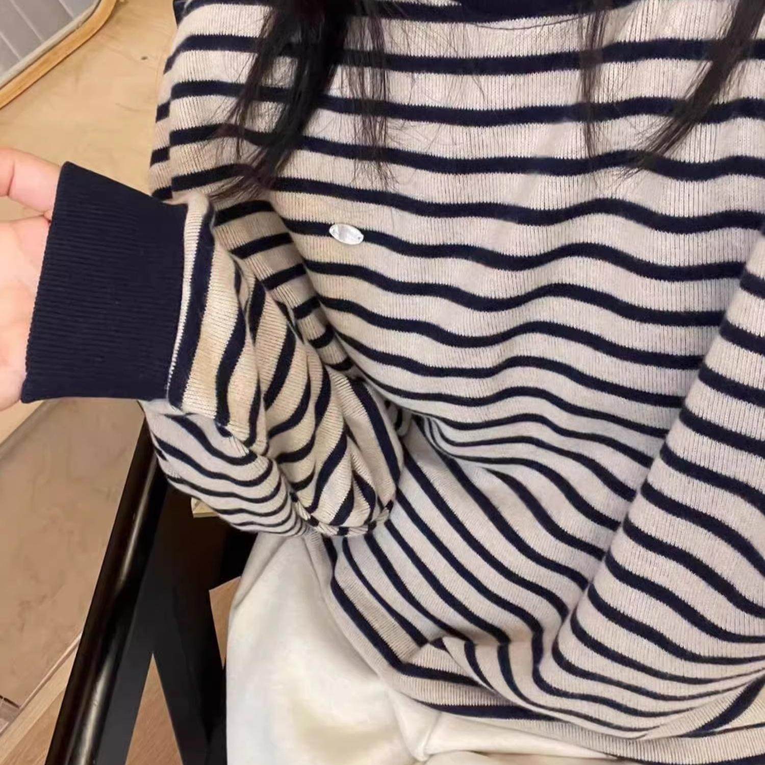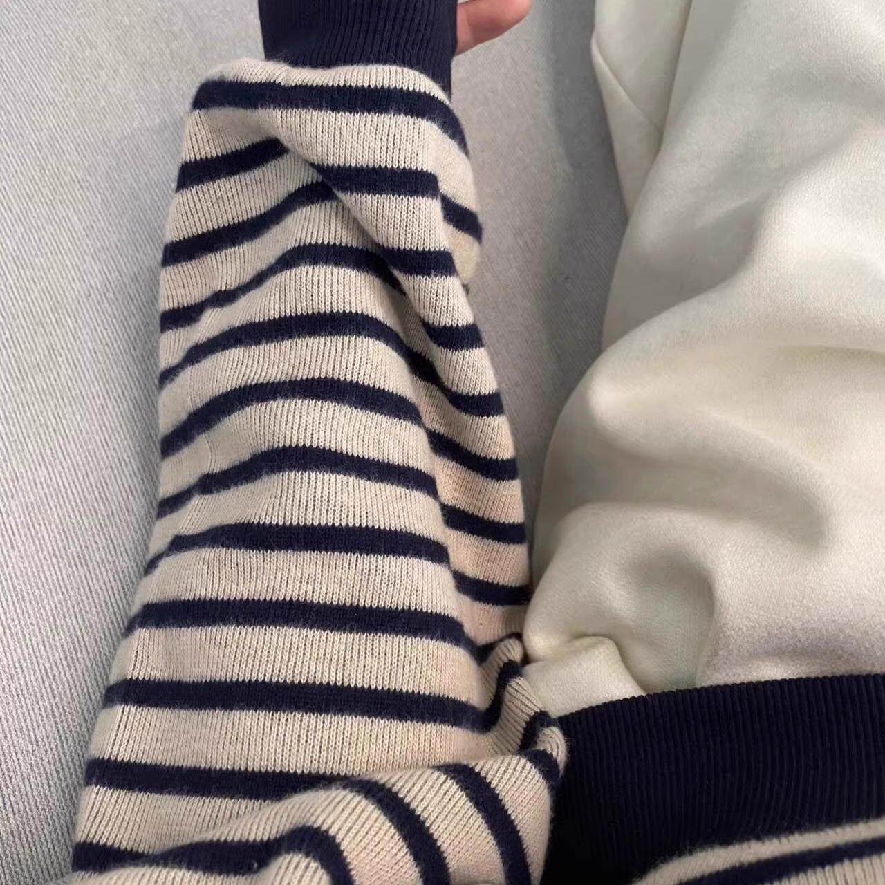 美式oversize条纹圆领卫衣女春秋2024新款爆款宽松独特超好看上衣