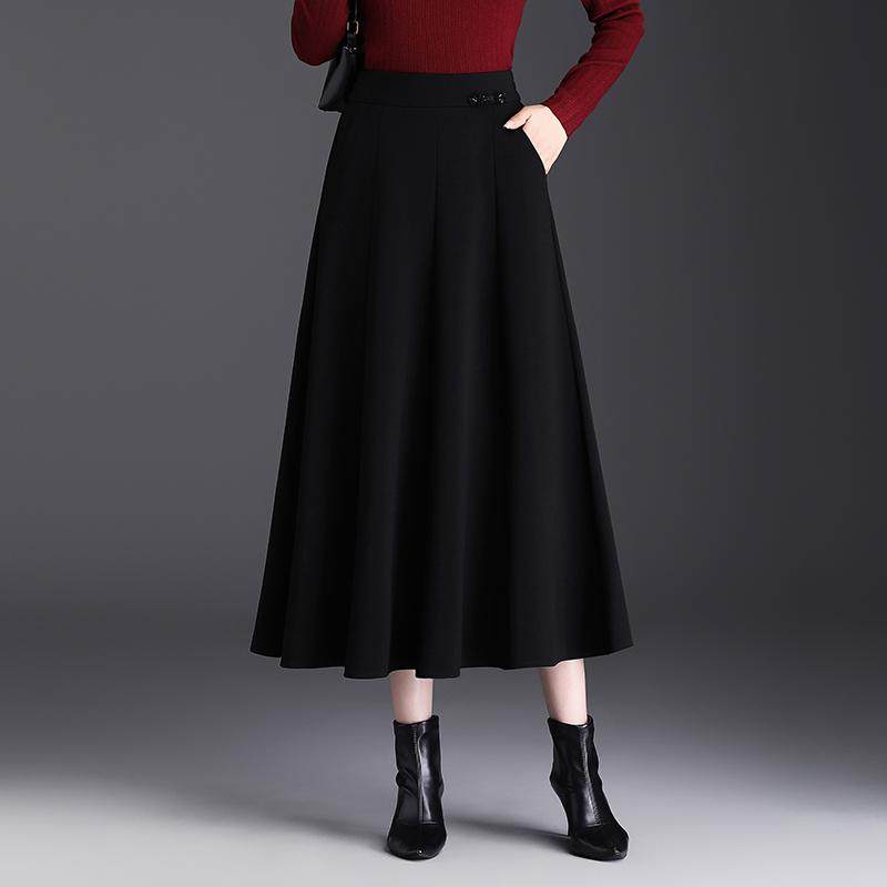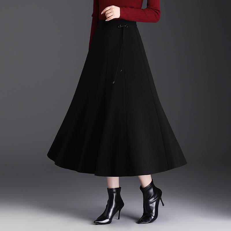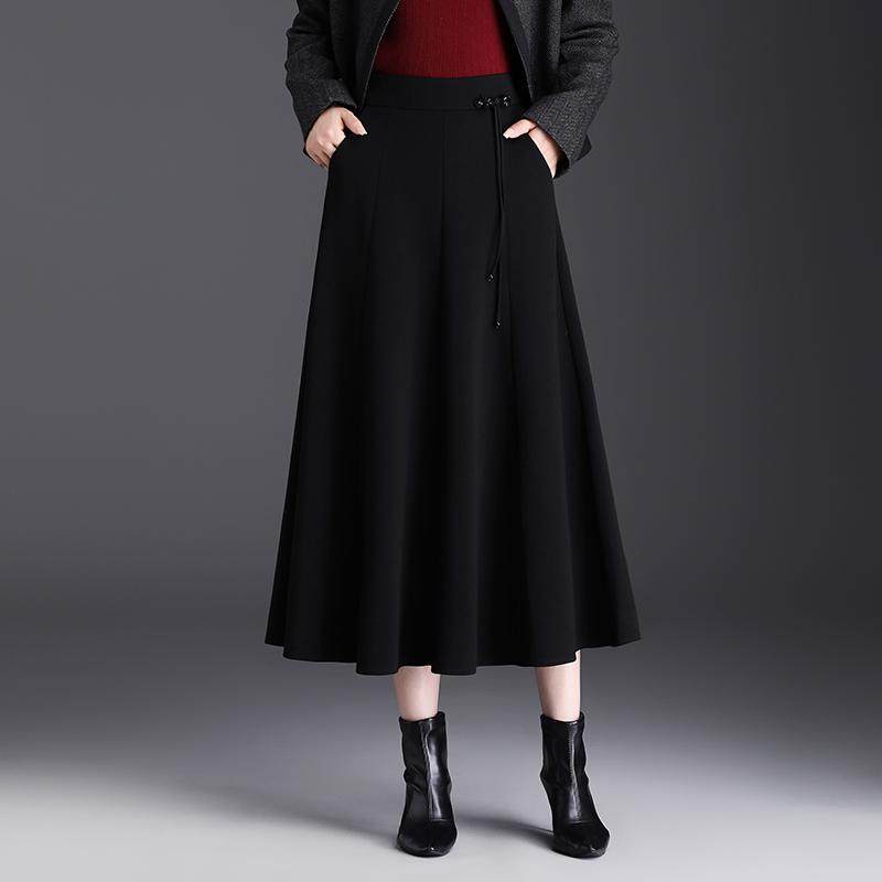 首页> 女装> 黑色高腰大摆半身裙女秋冬2025新款垂感显瘦a字裙气质通勤中长裙