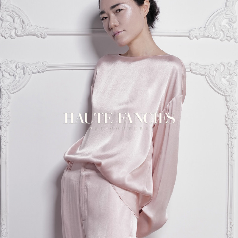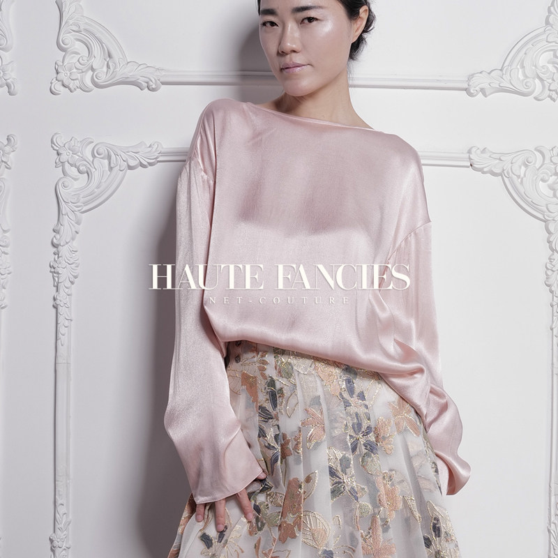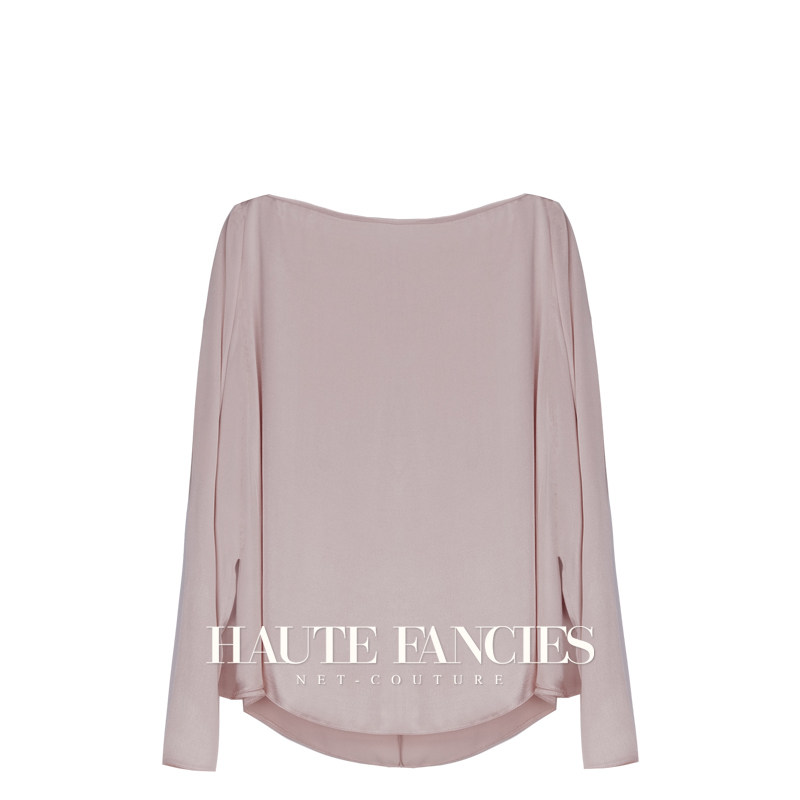 胭脂 HAUTE FANCIES后构想|25早秋烟粉色极简一字肩宽松长袖上衣