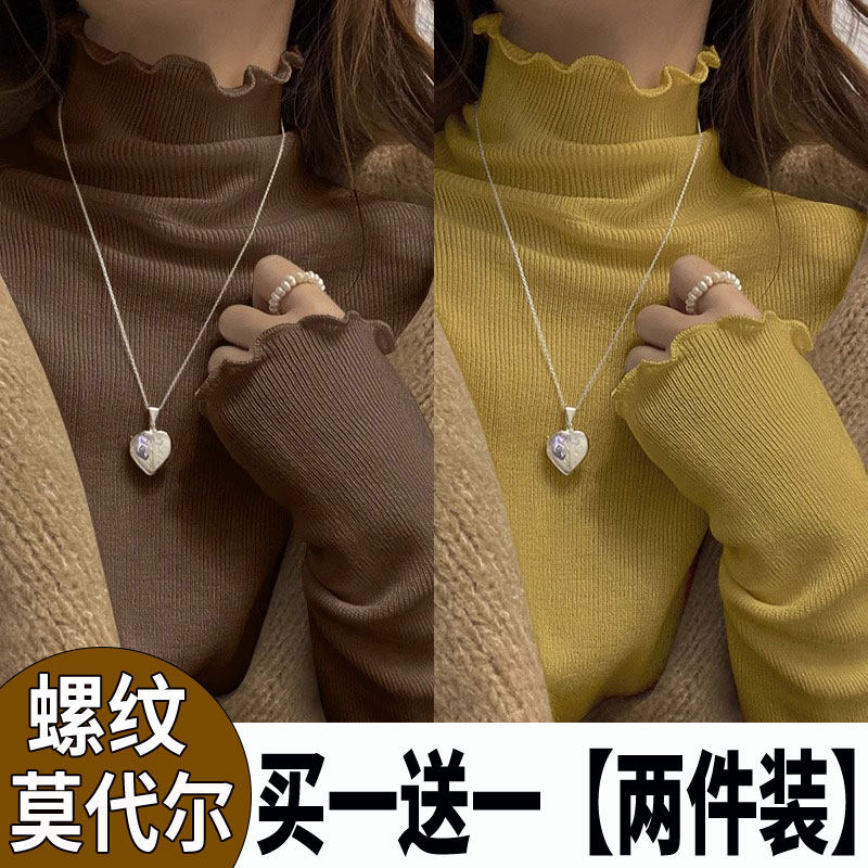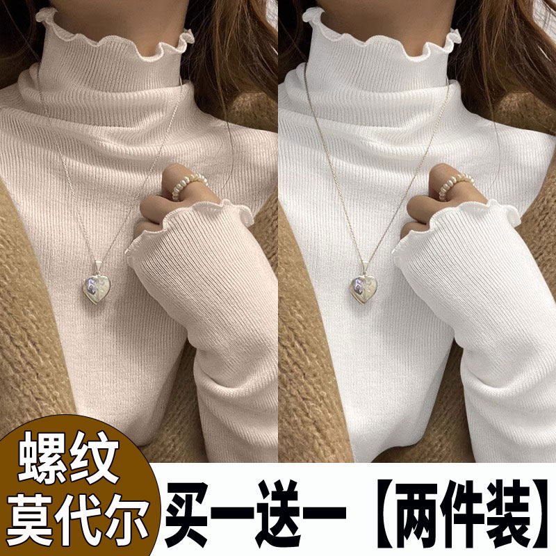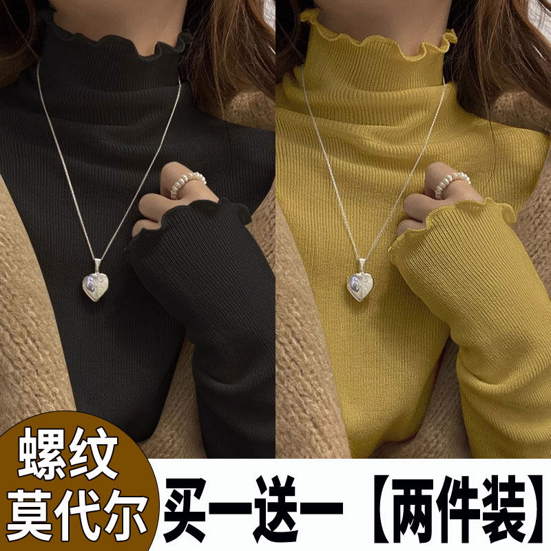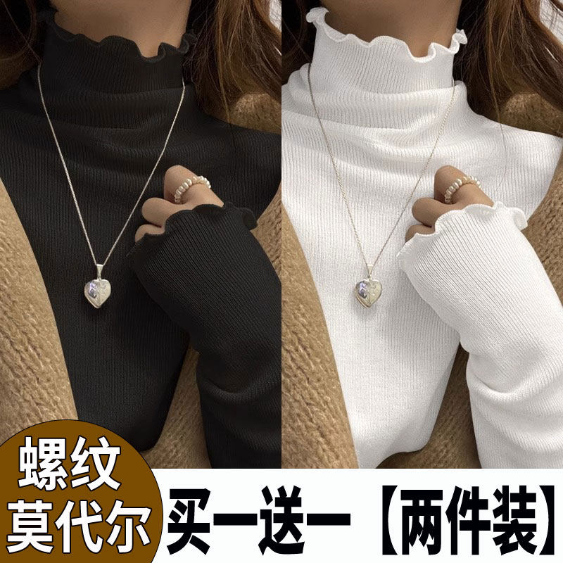2025春秋新款打底衫女木耳边t恤半高领纯色百搭洋气修身显瘦上衣